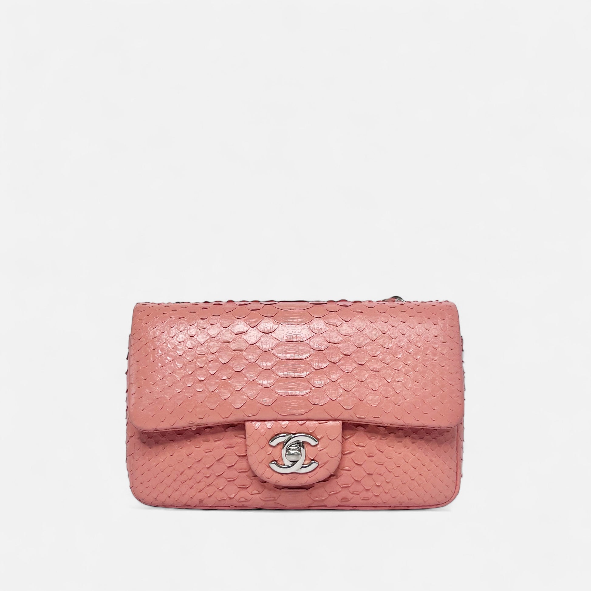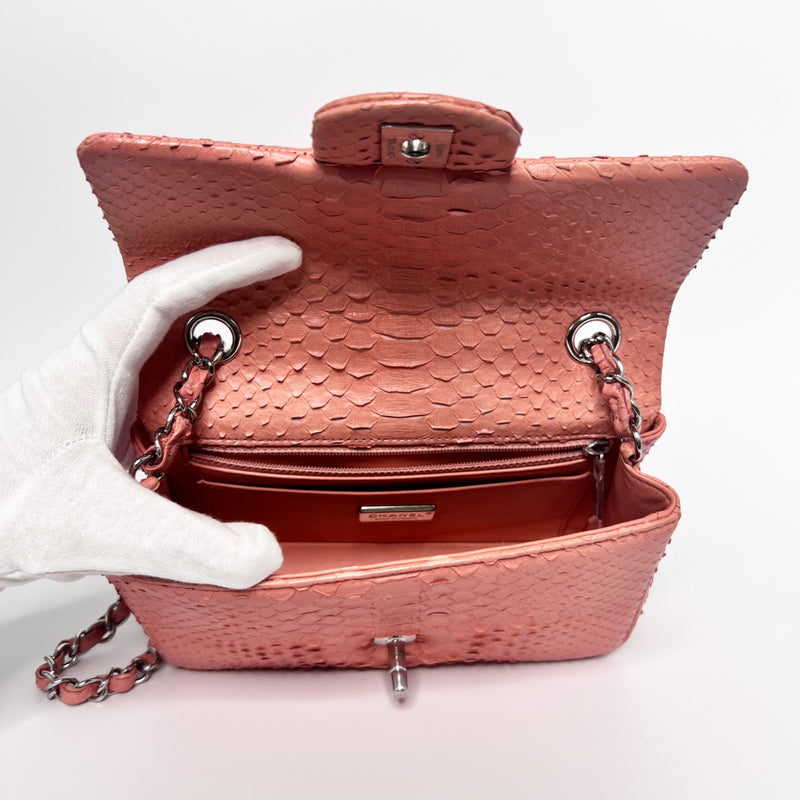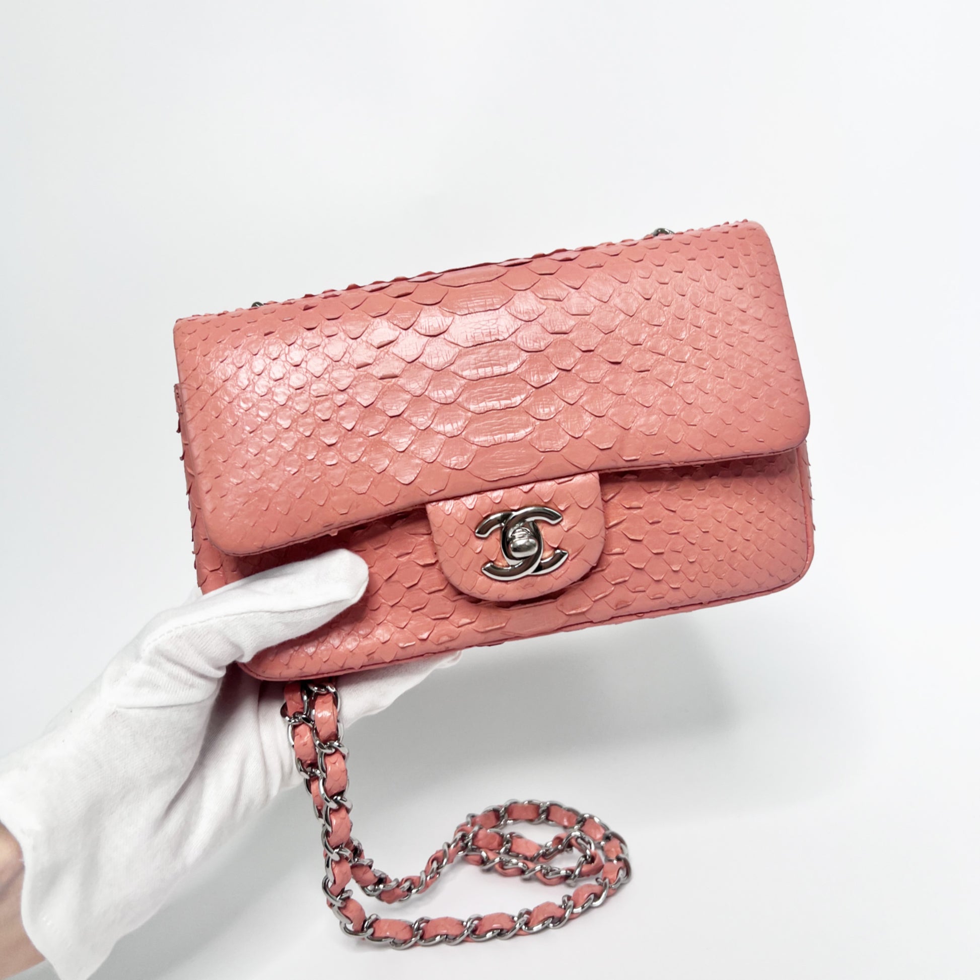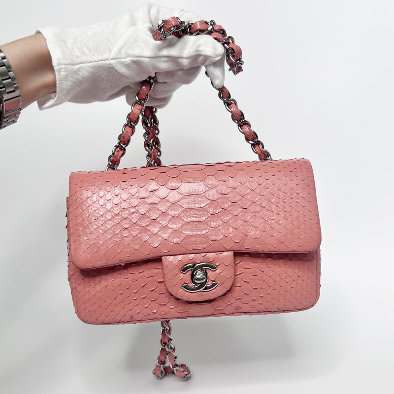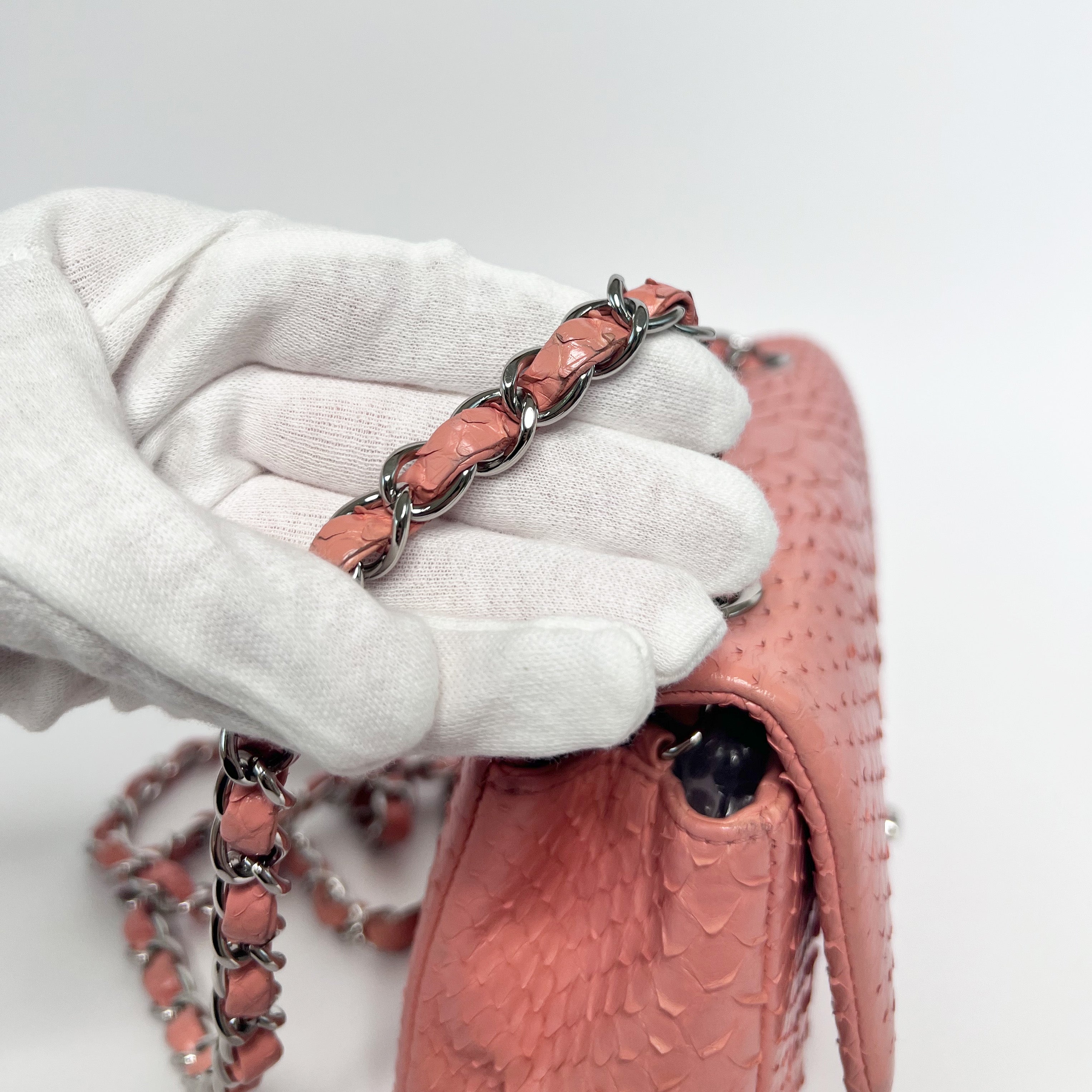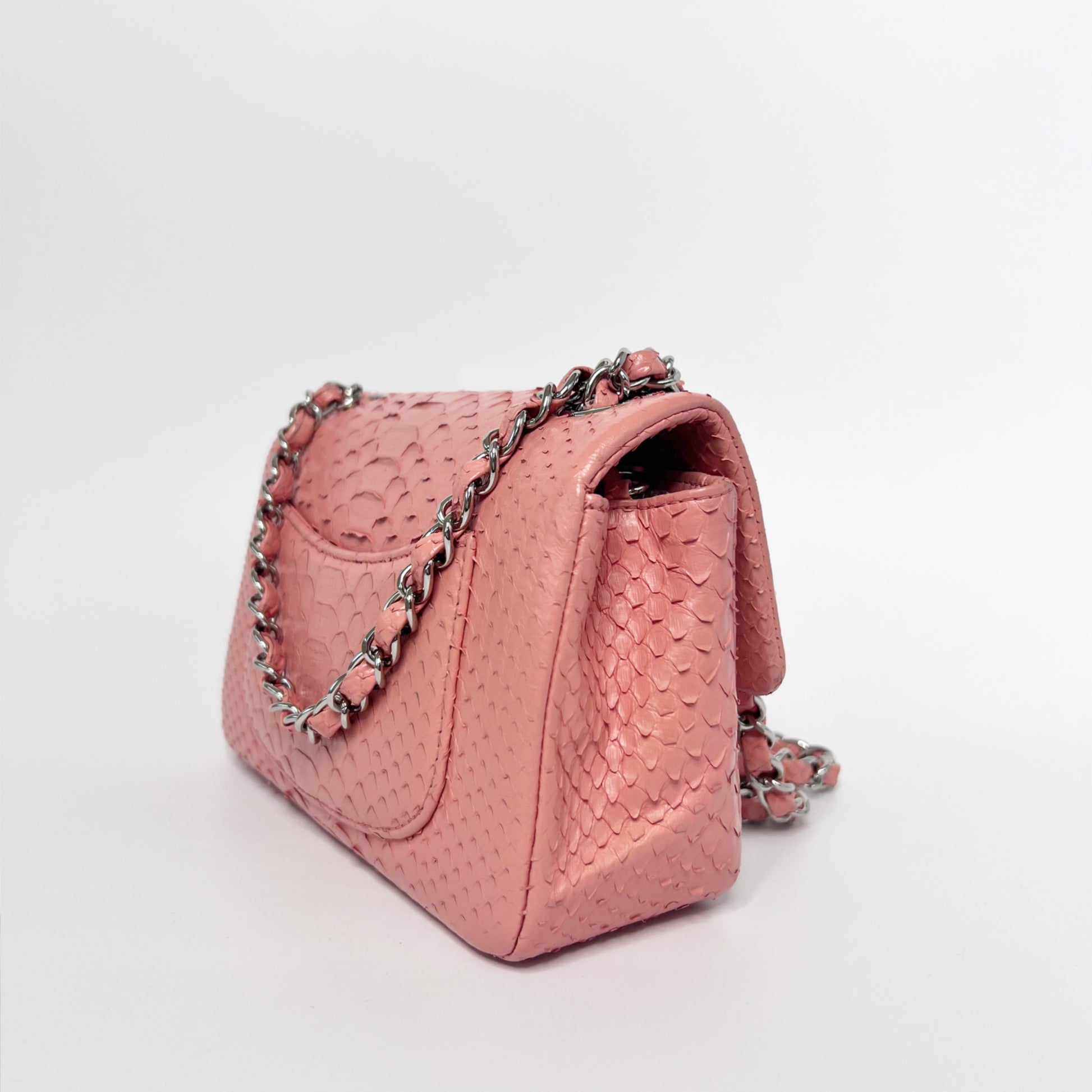 CC Python Snakeskin Mini Flap in Pink with SHW