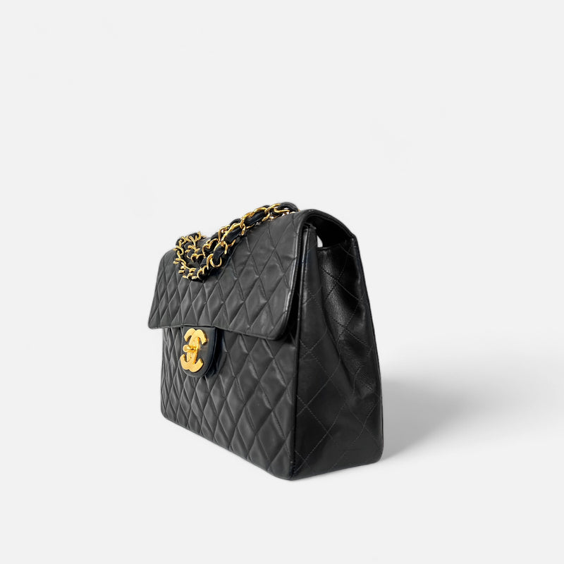 CC Vintage Black Quilted Lambskin Jumbo XL Flap Bag
