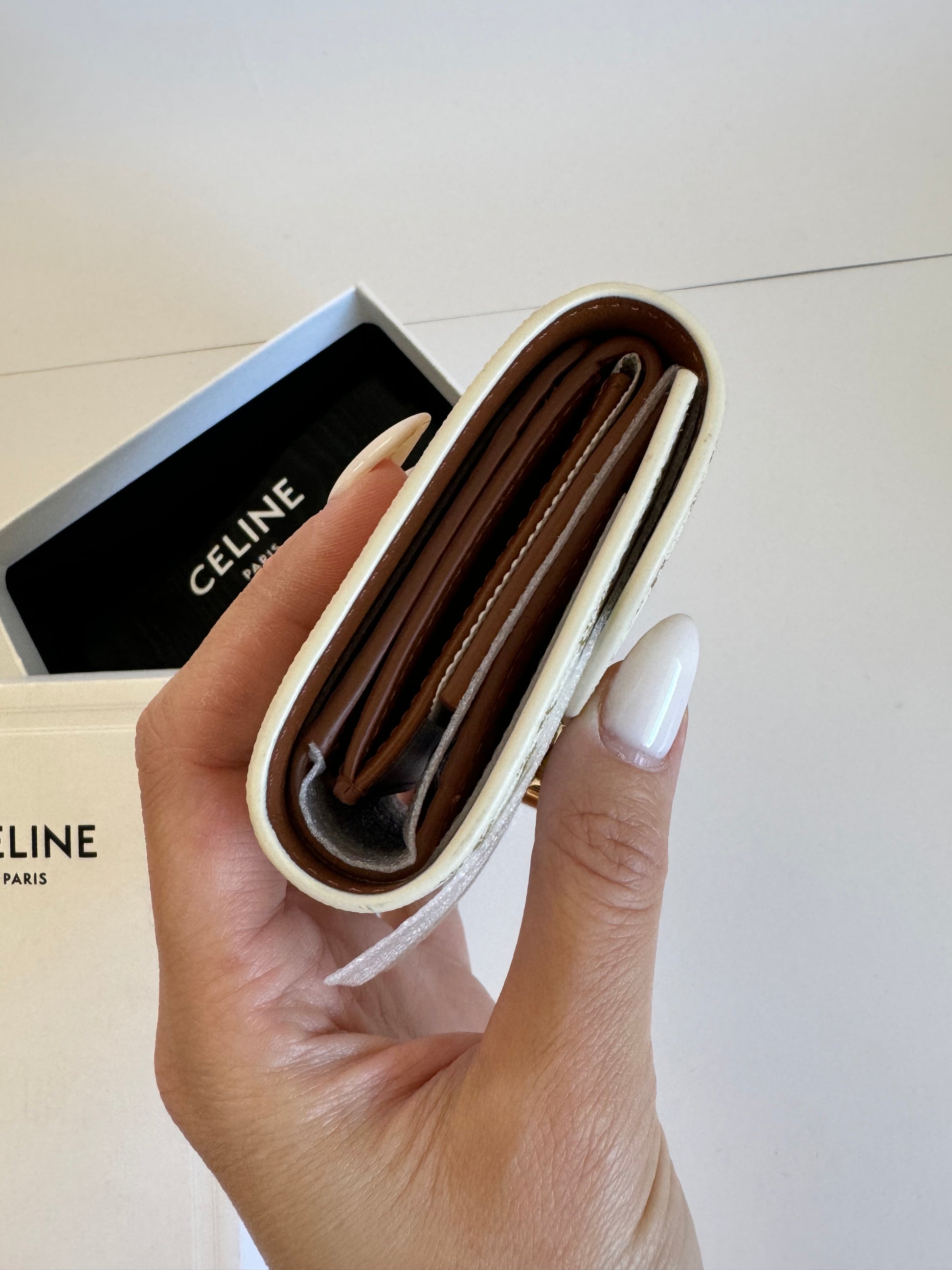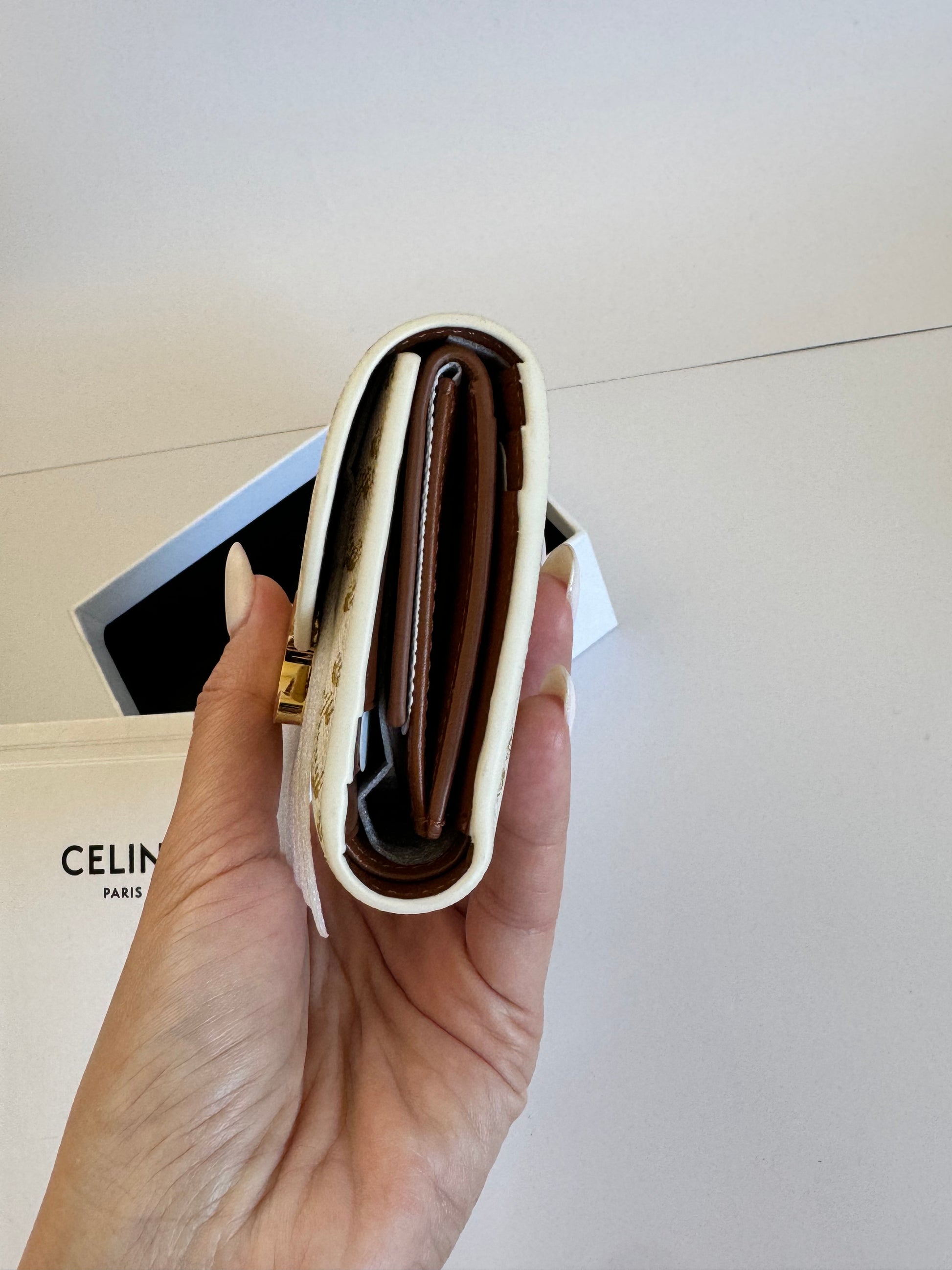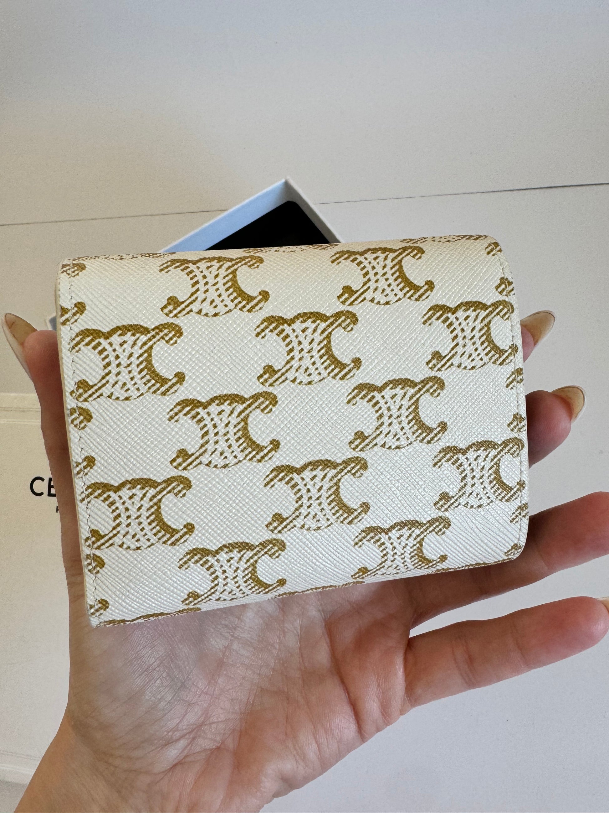 100% authentic Celine Triomphe Canvas Compact Wallet – Gold Finishing