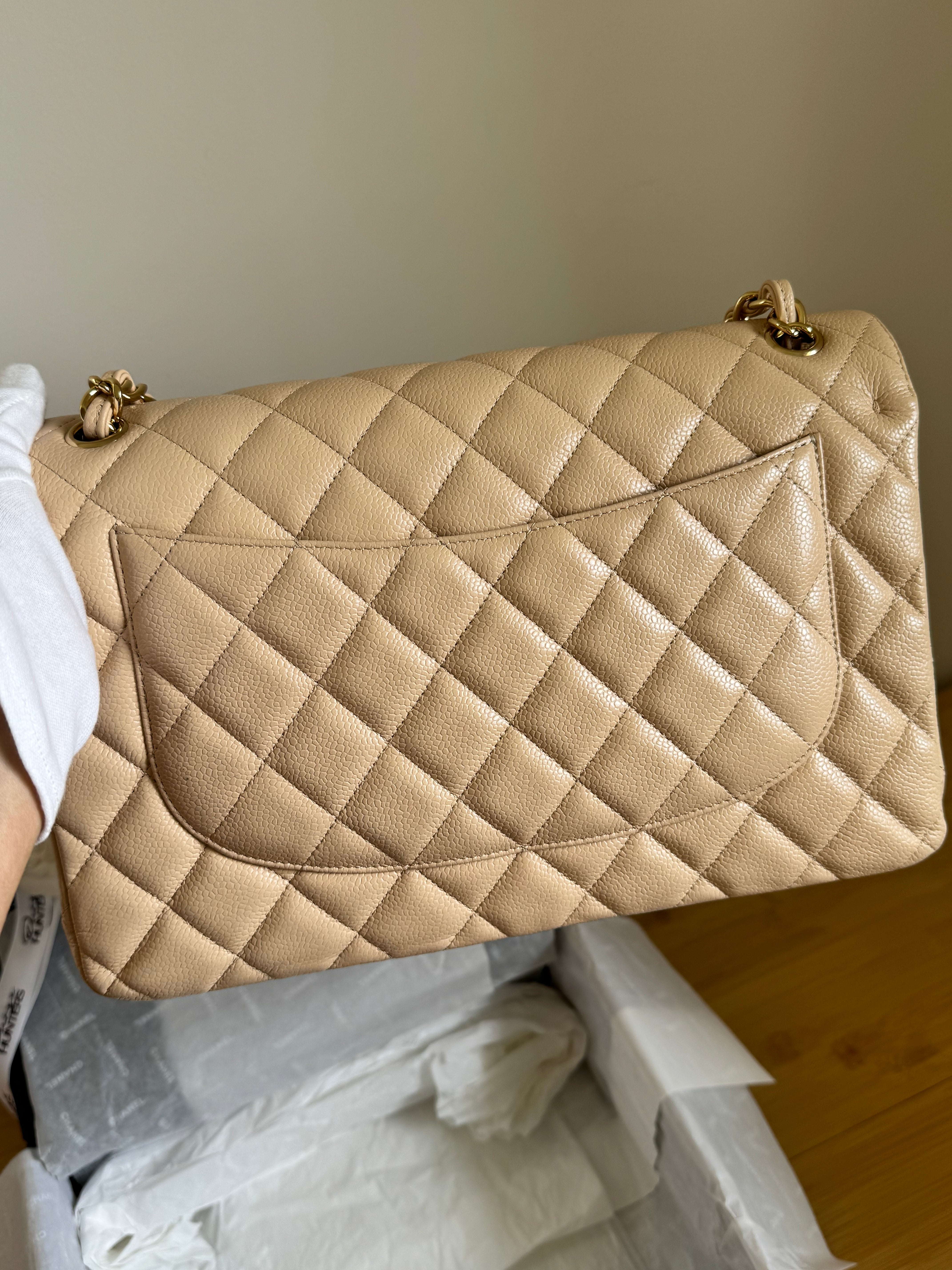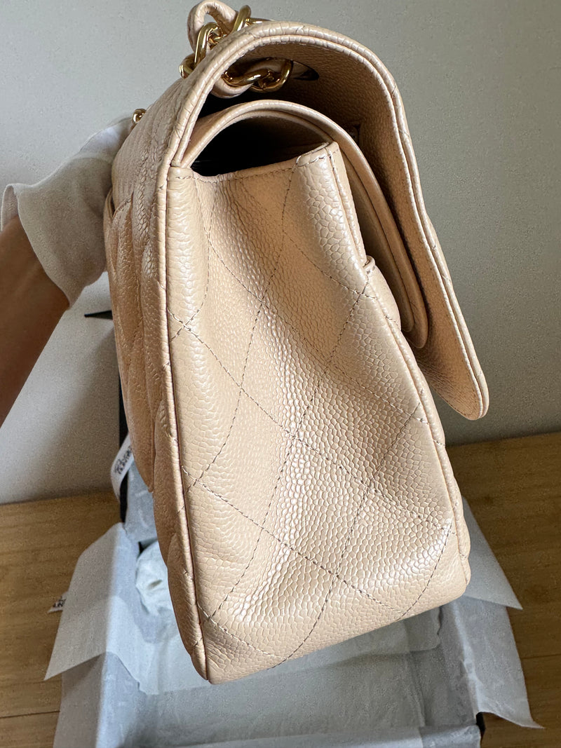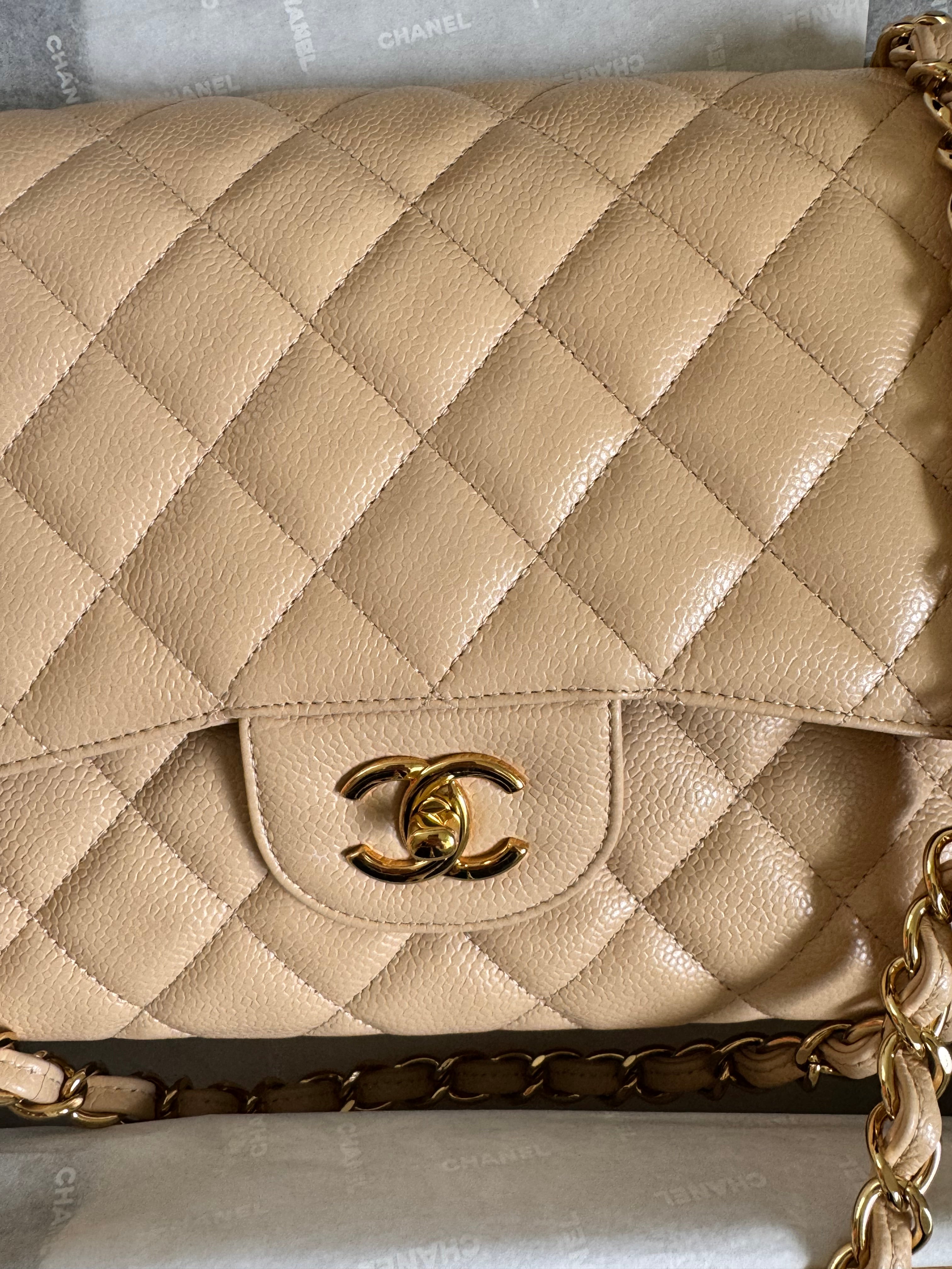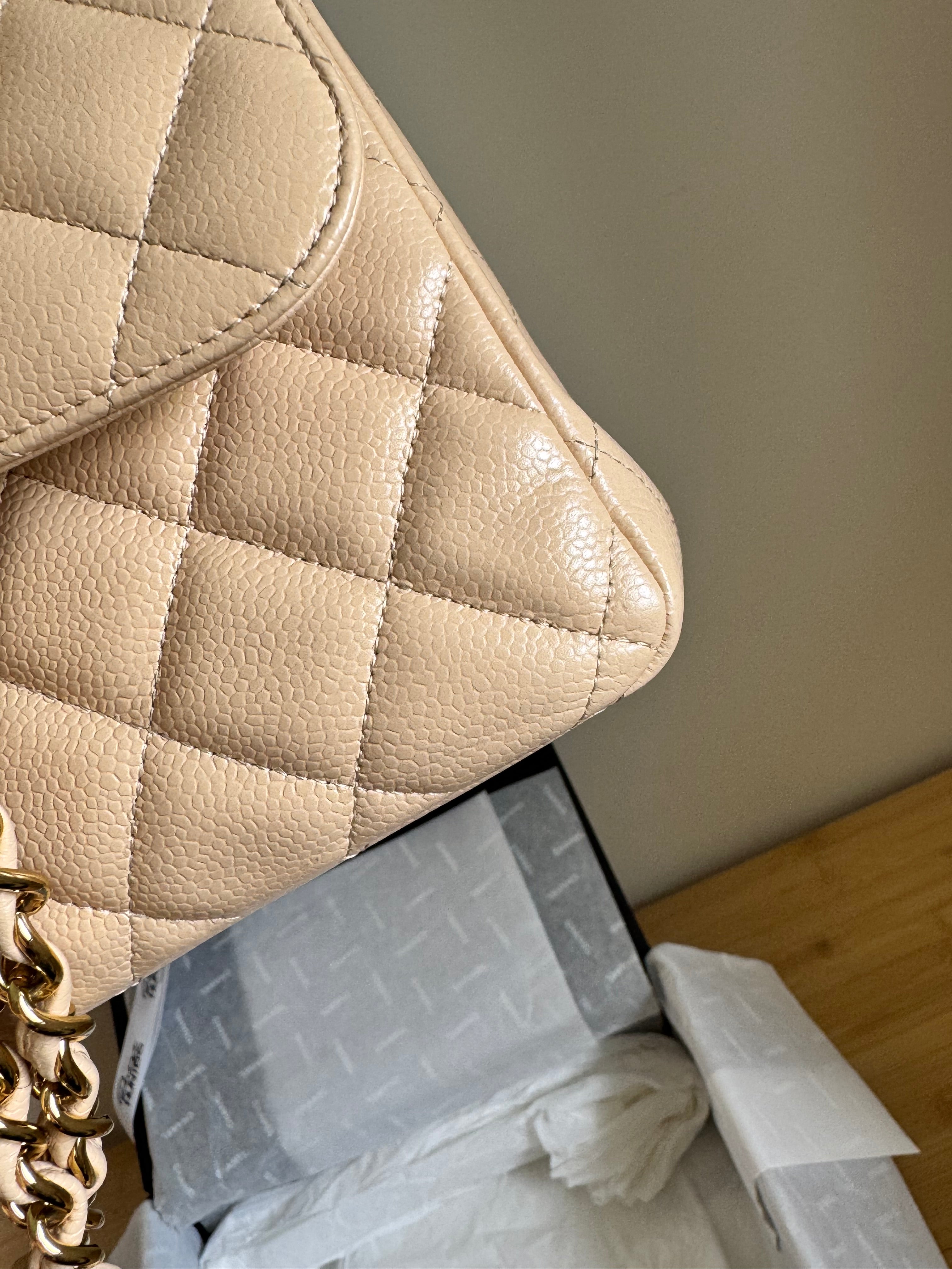 Chanel Jumbo Double Flap in Beige Caviar with Gold Hardware