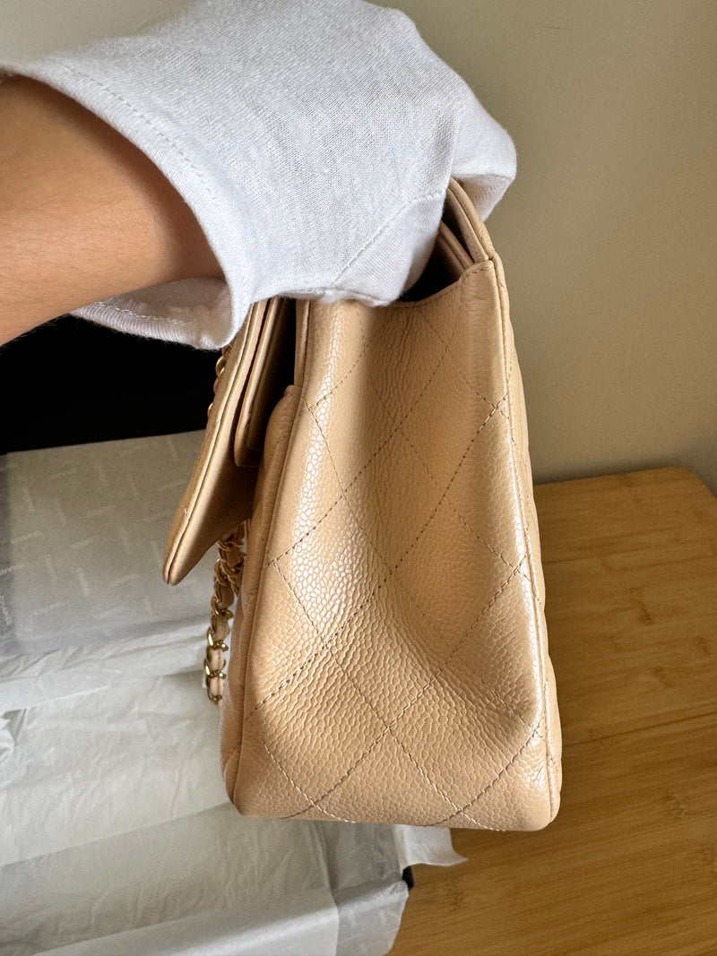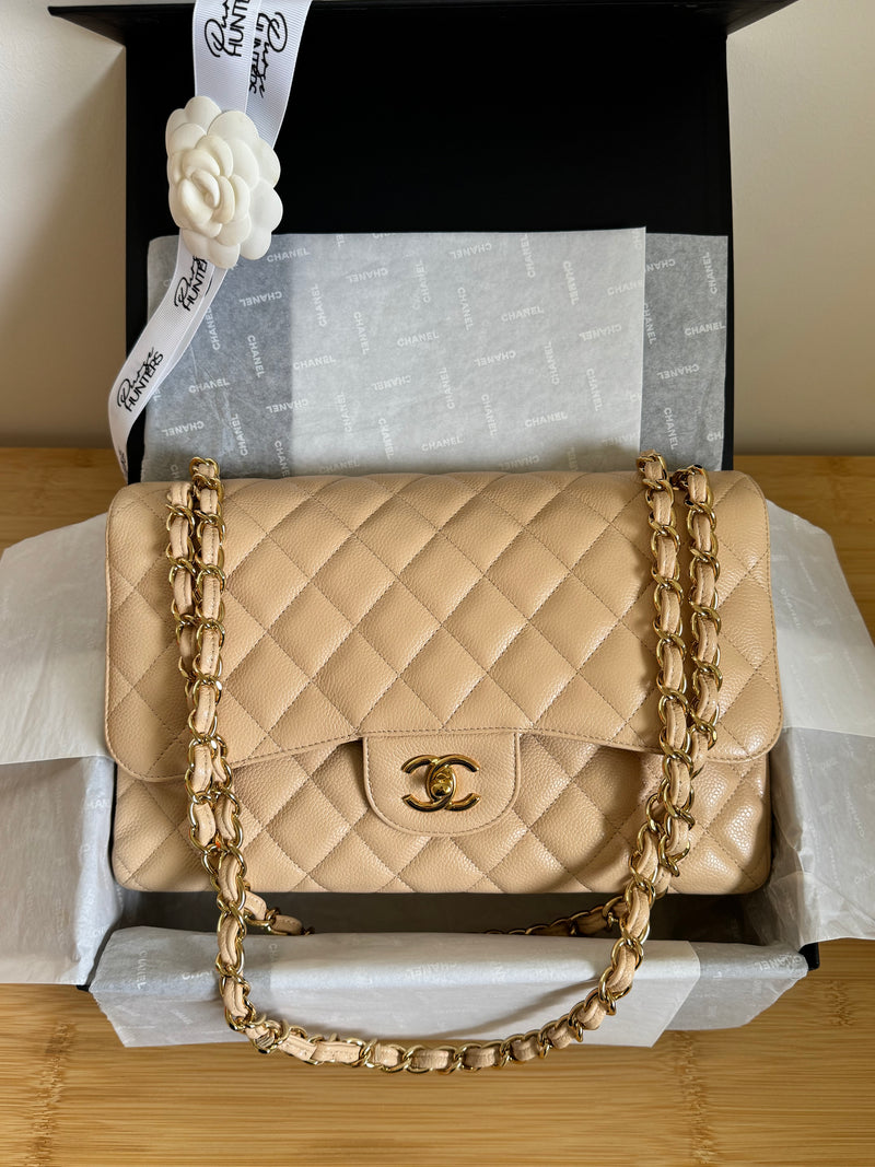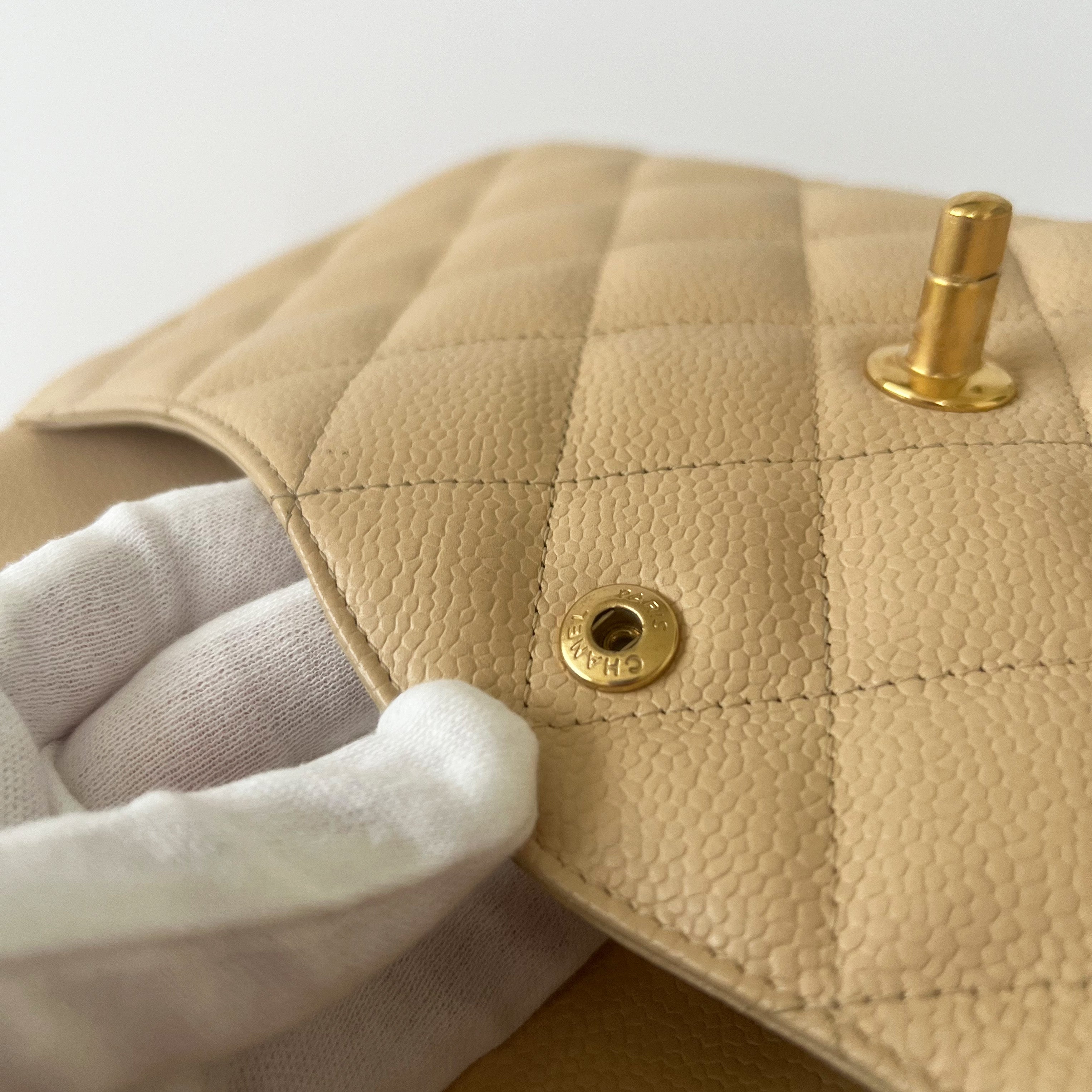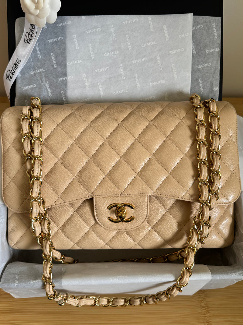 Chanel Jumbo Double Flap in Beige Caviar with Gold Hardware