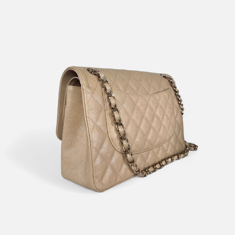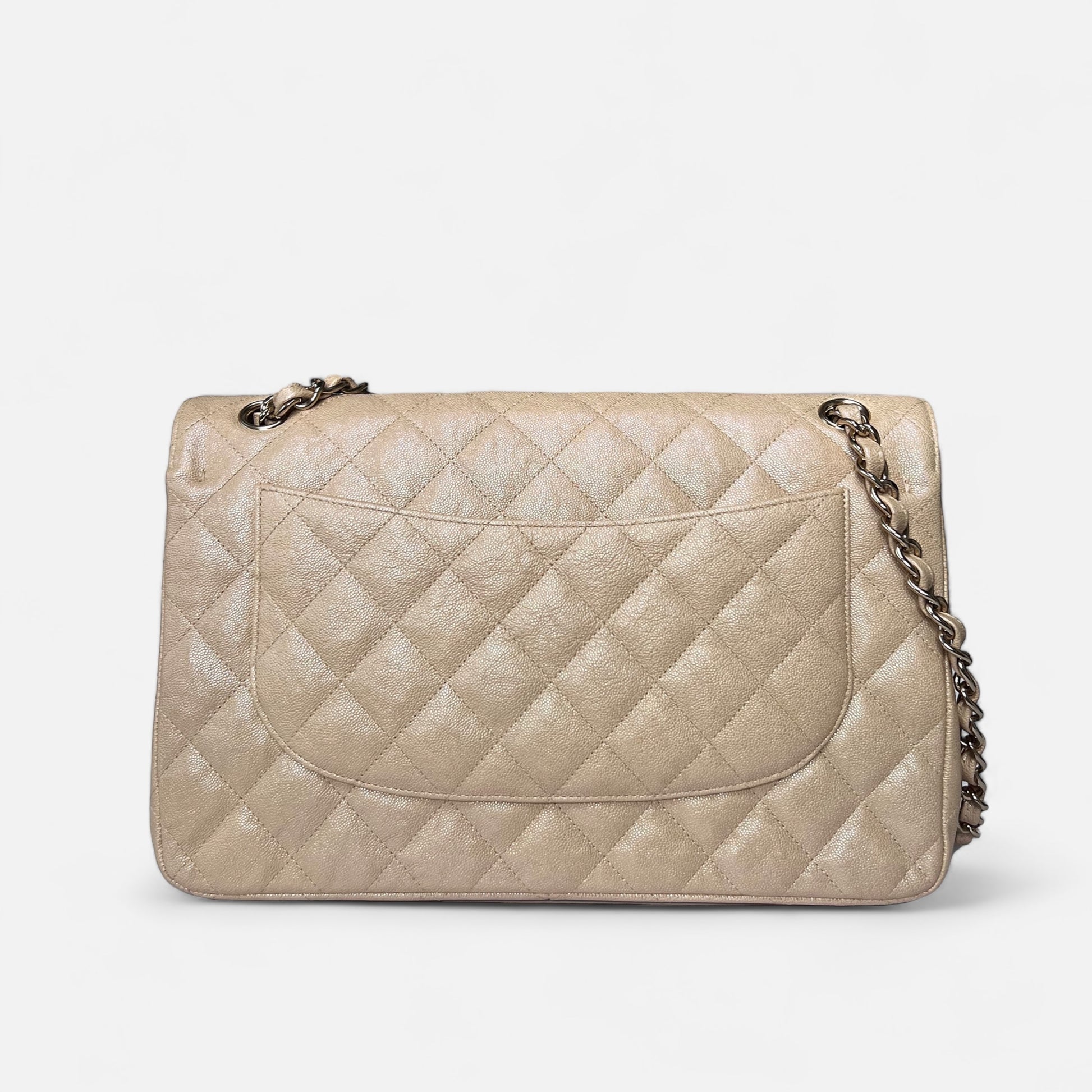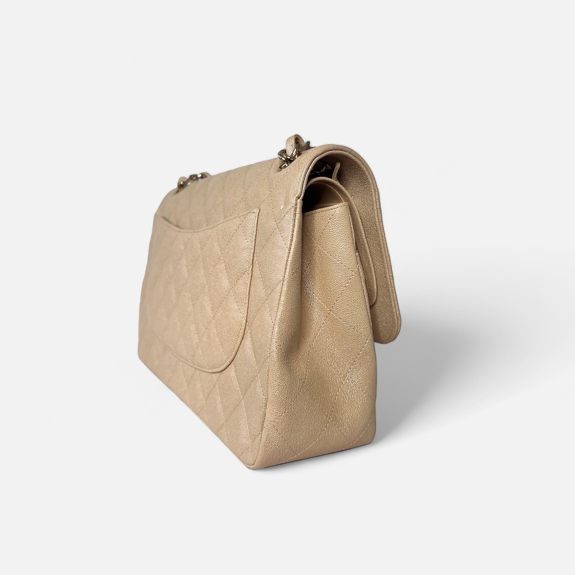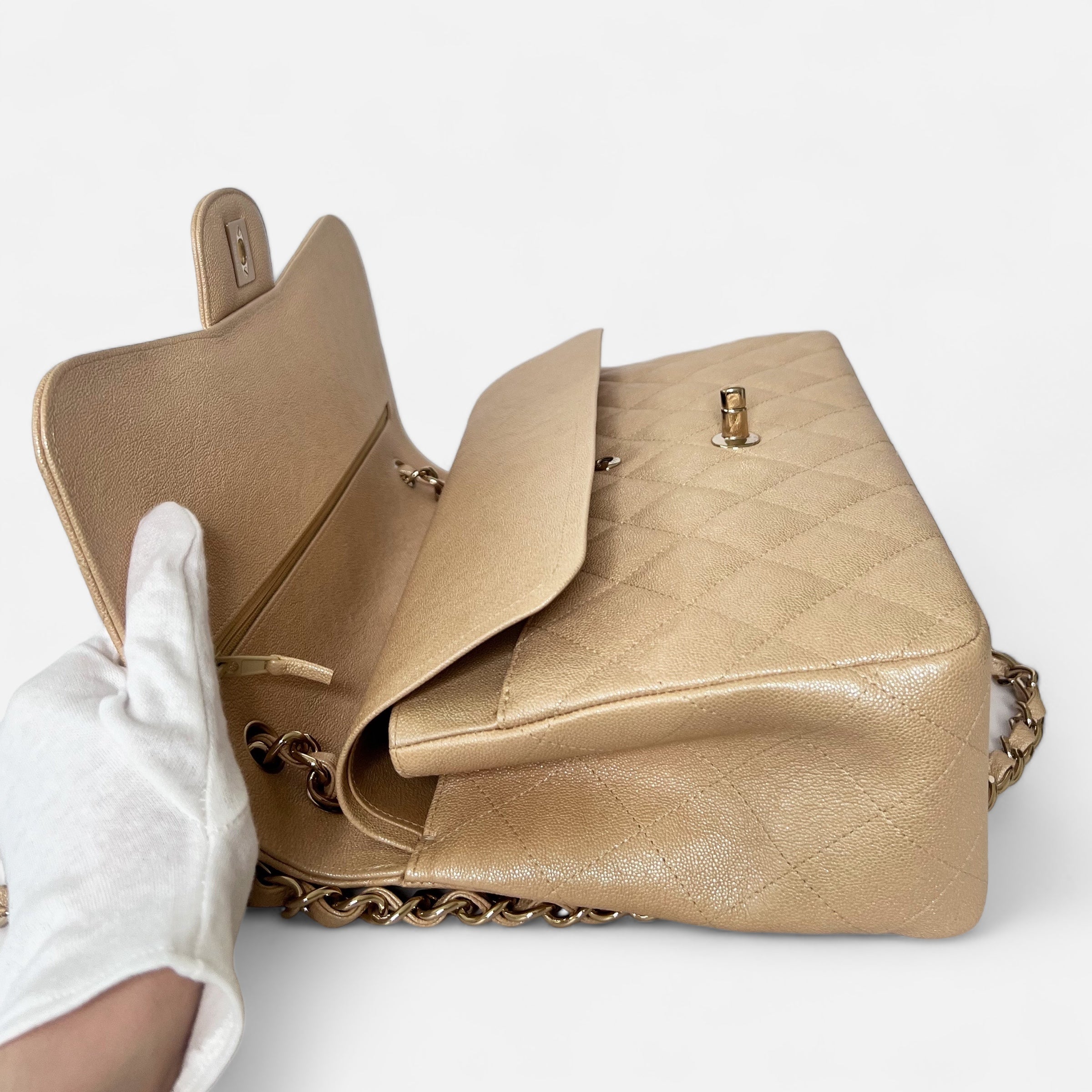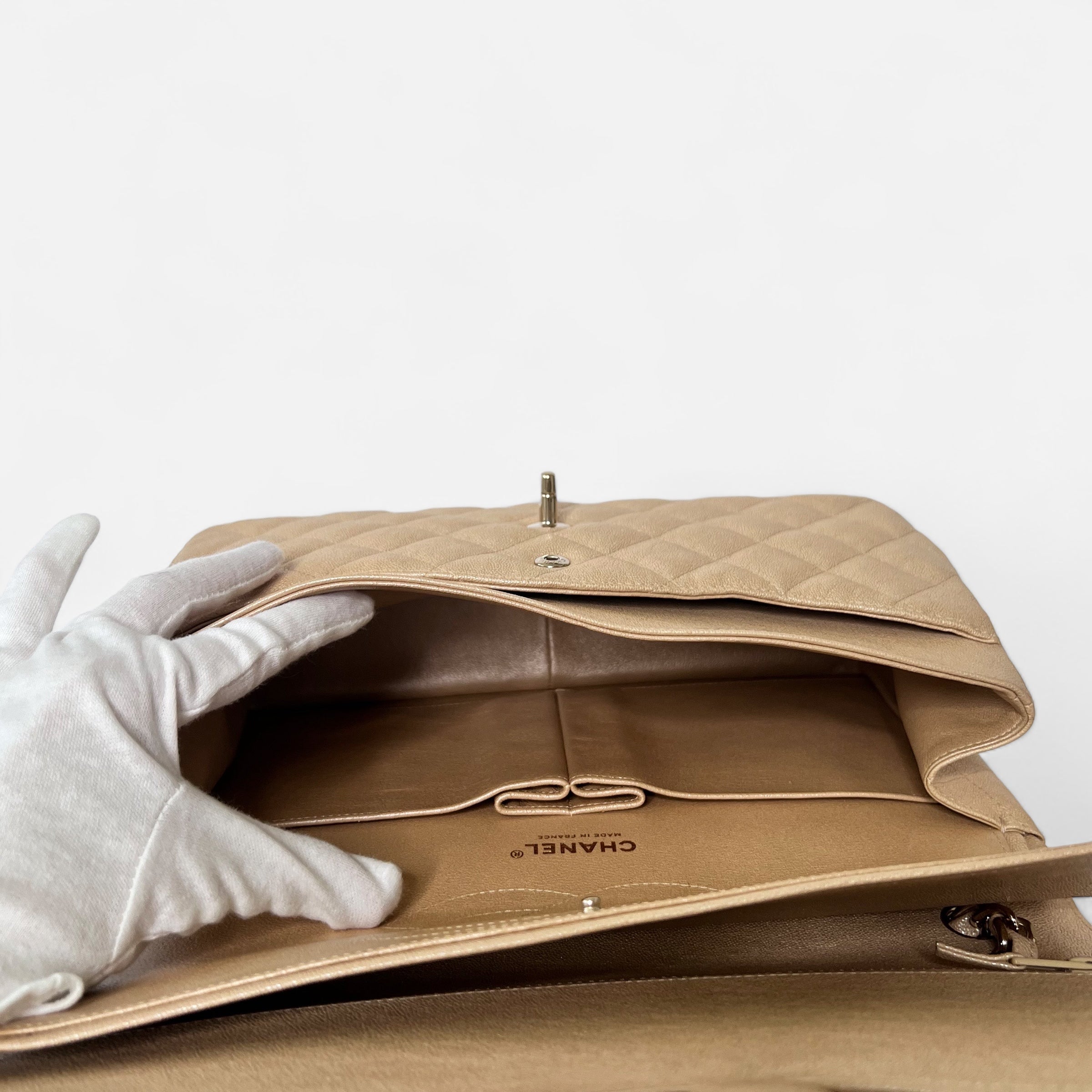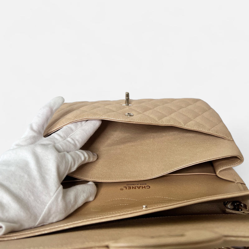 19S Jumbo in Iridescent Double Flap Beige Caviar Lambskin With GHW