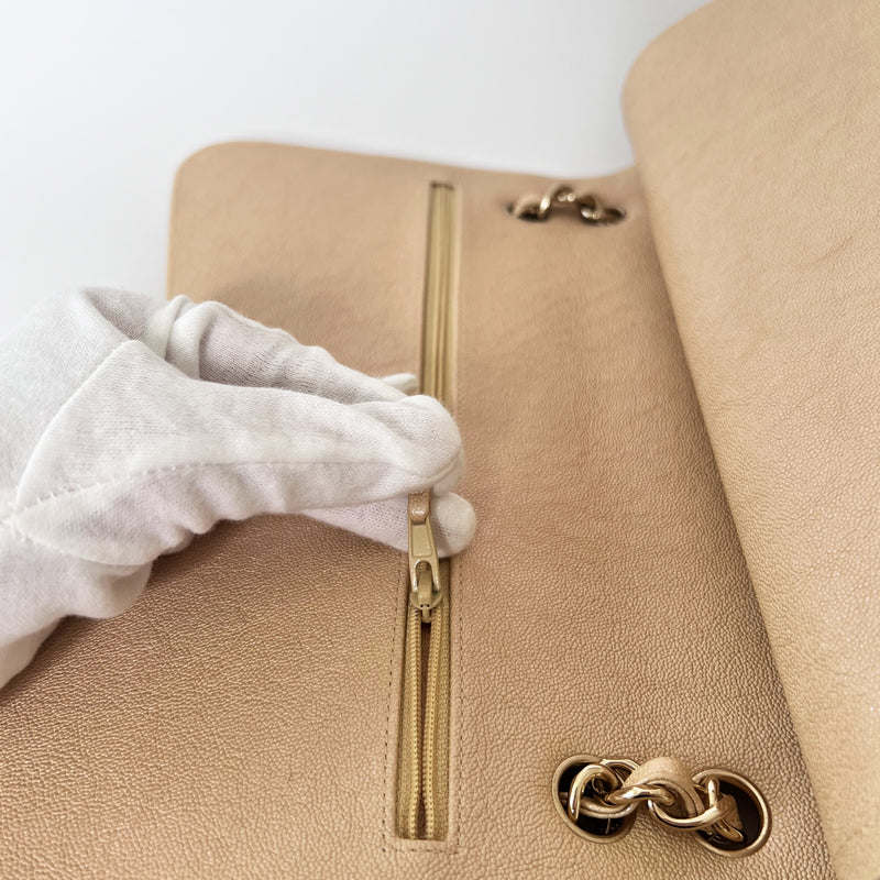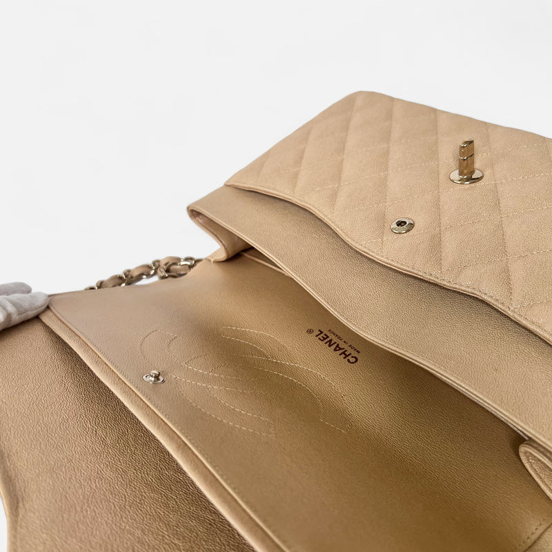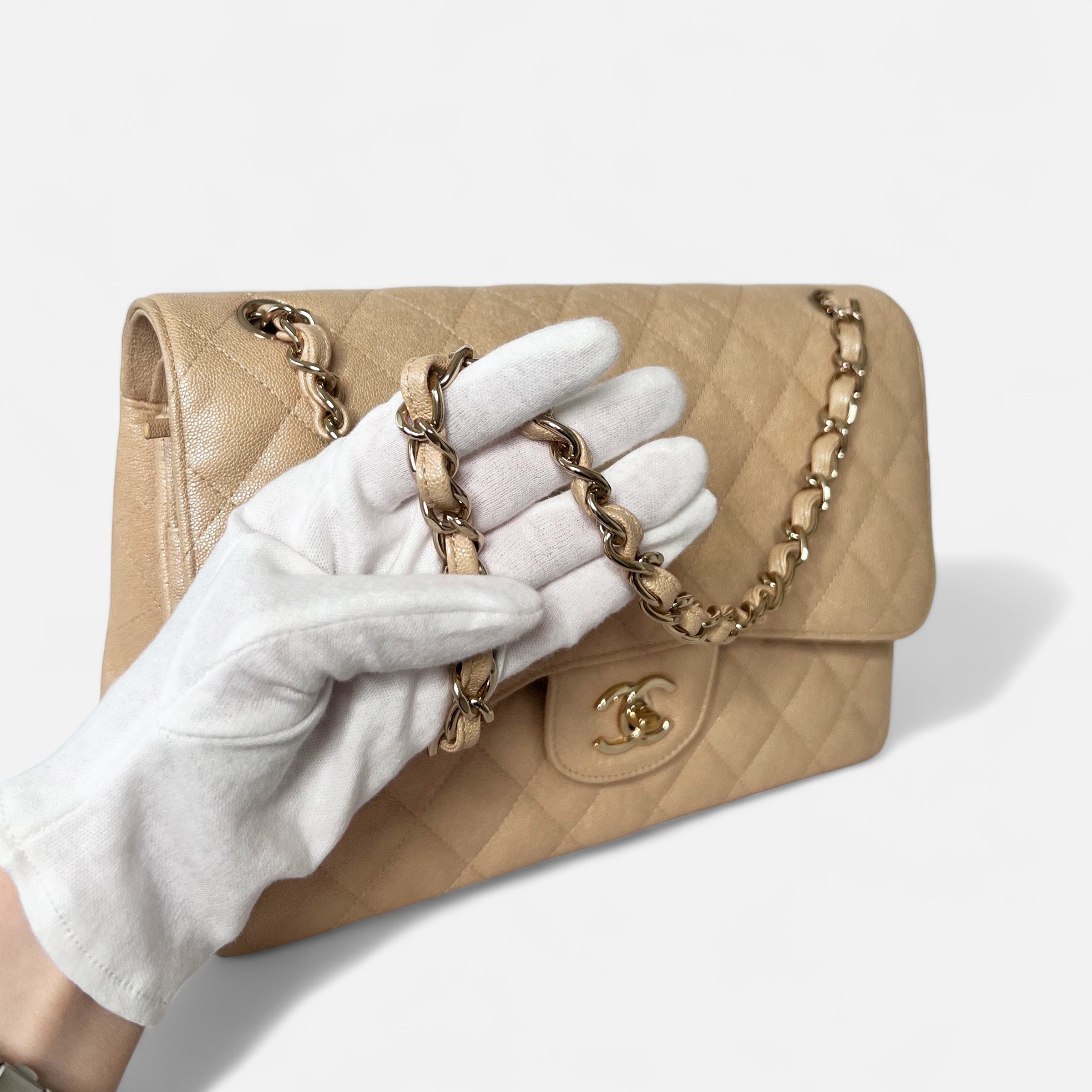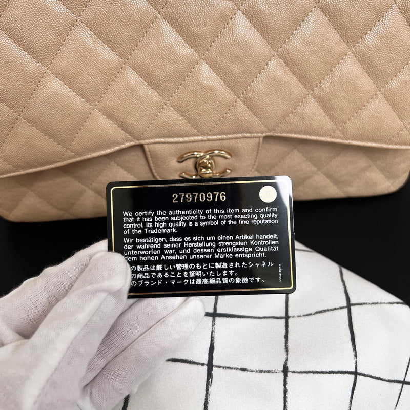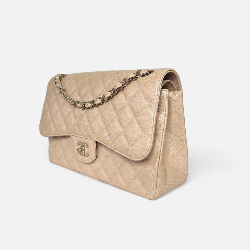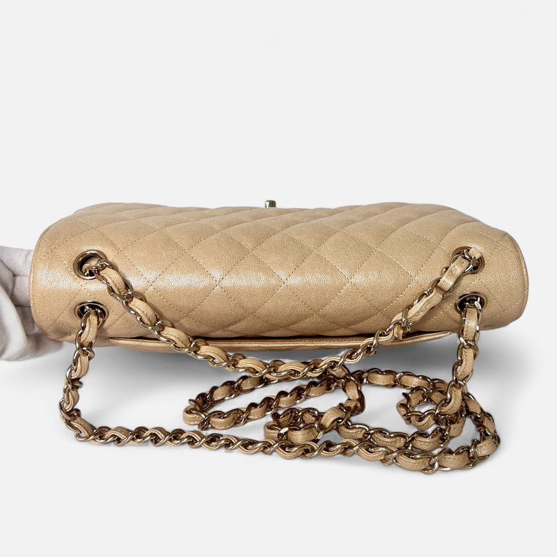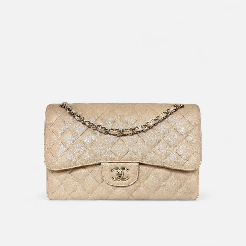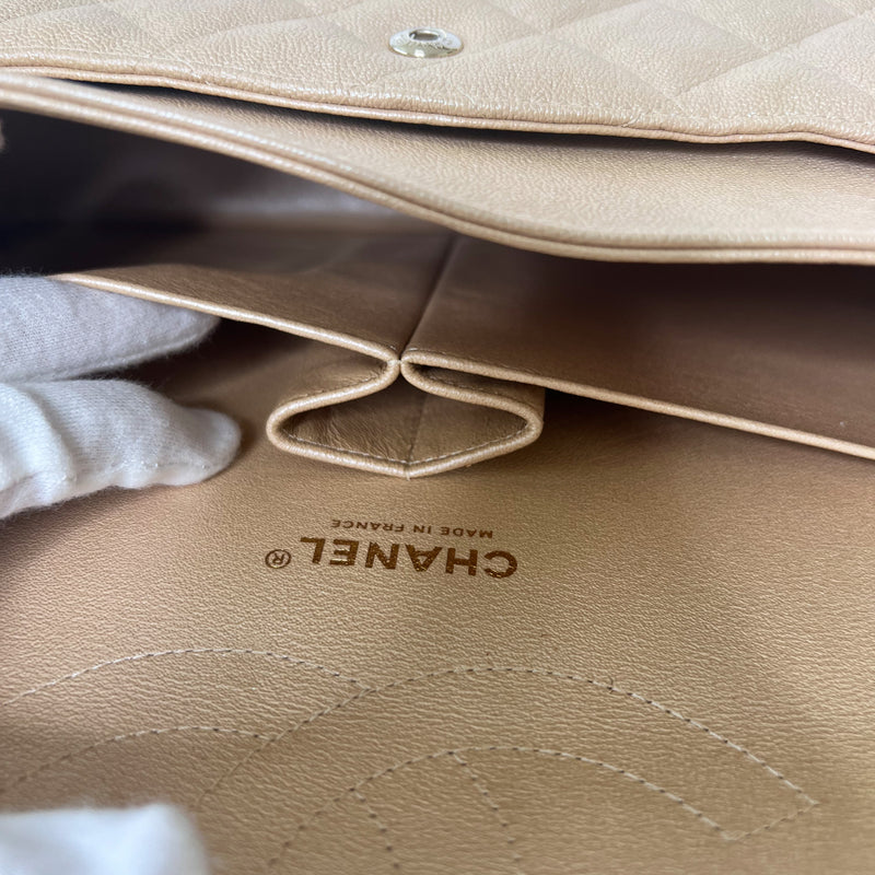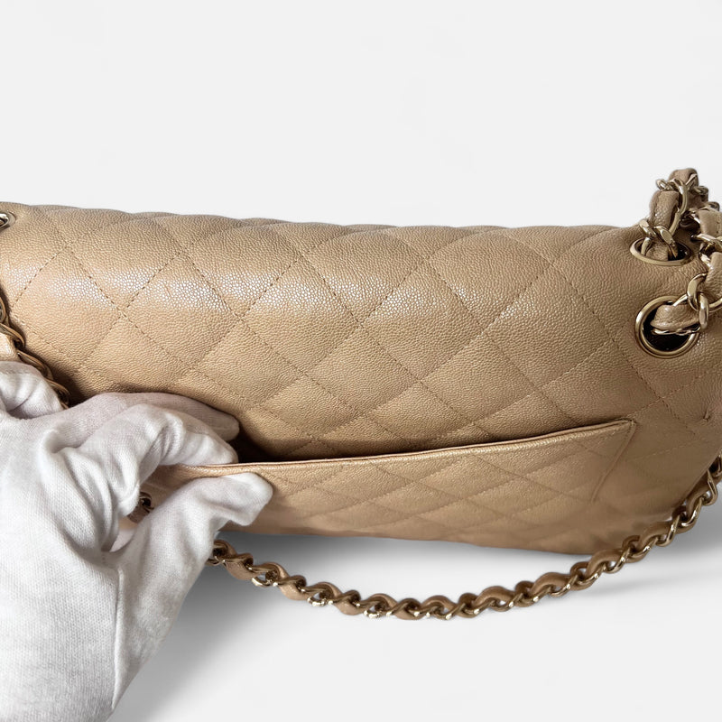 19S Jumbo in Iridescent Double Flap Beige Caviar Lambskin With GHW