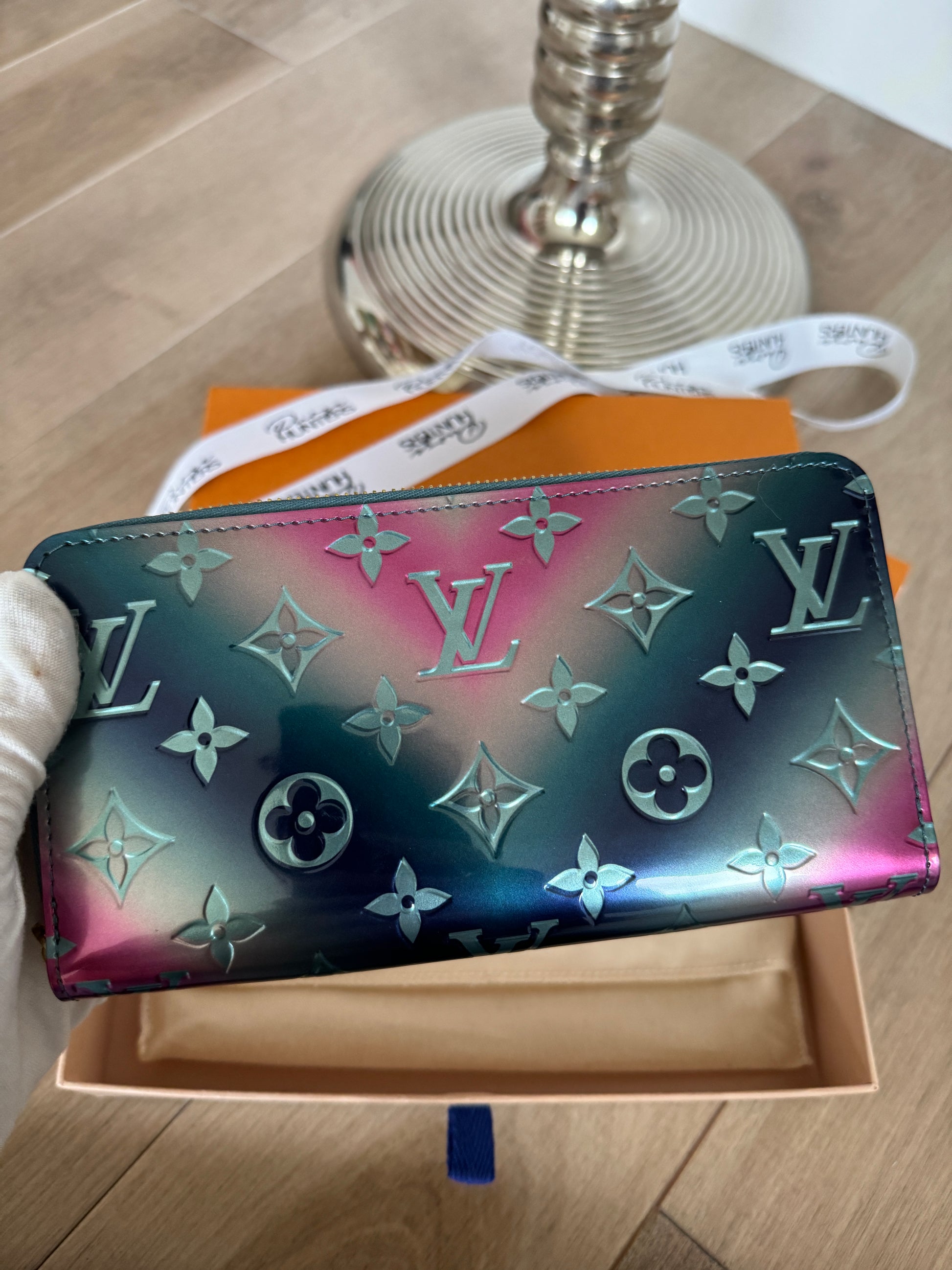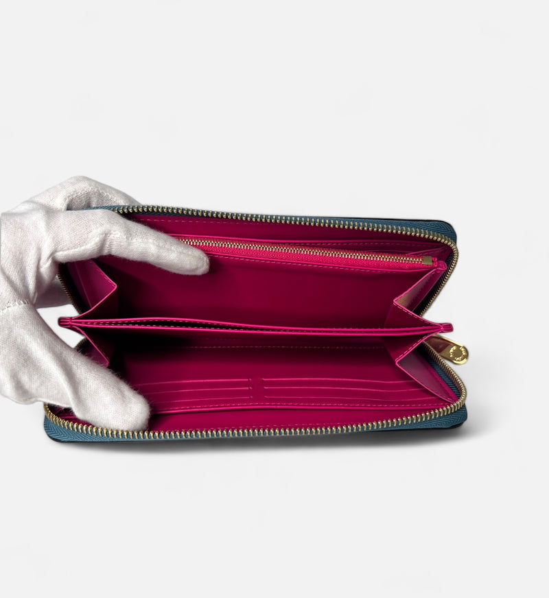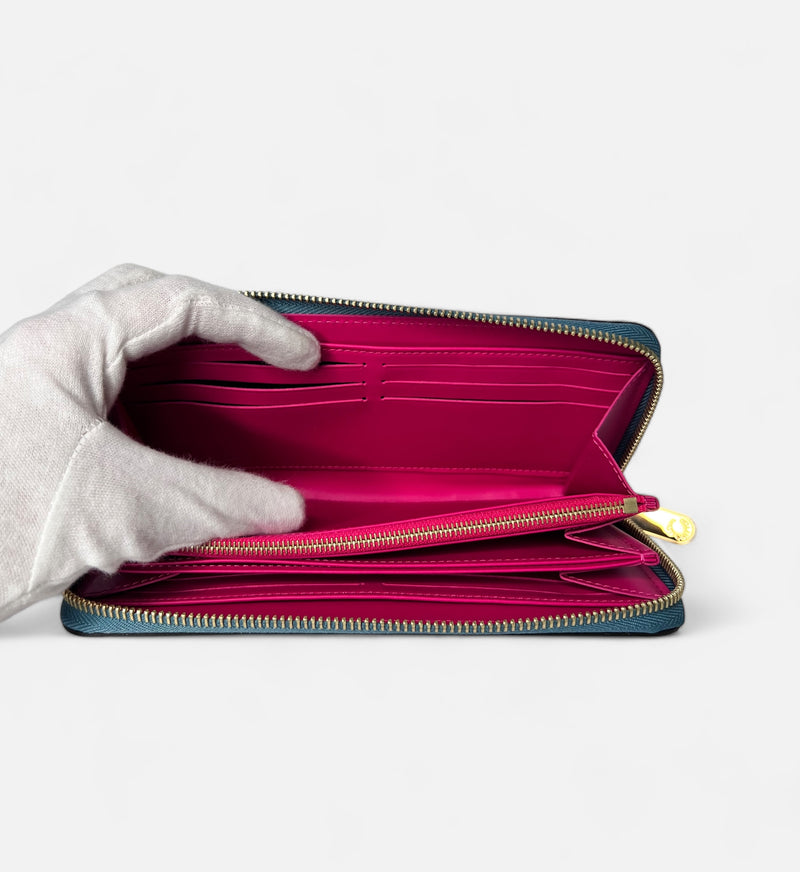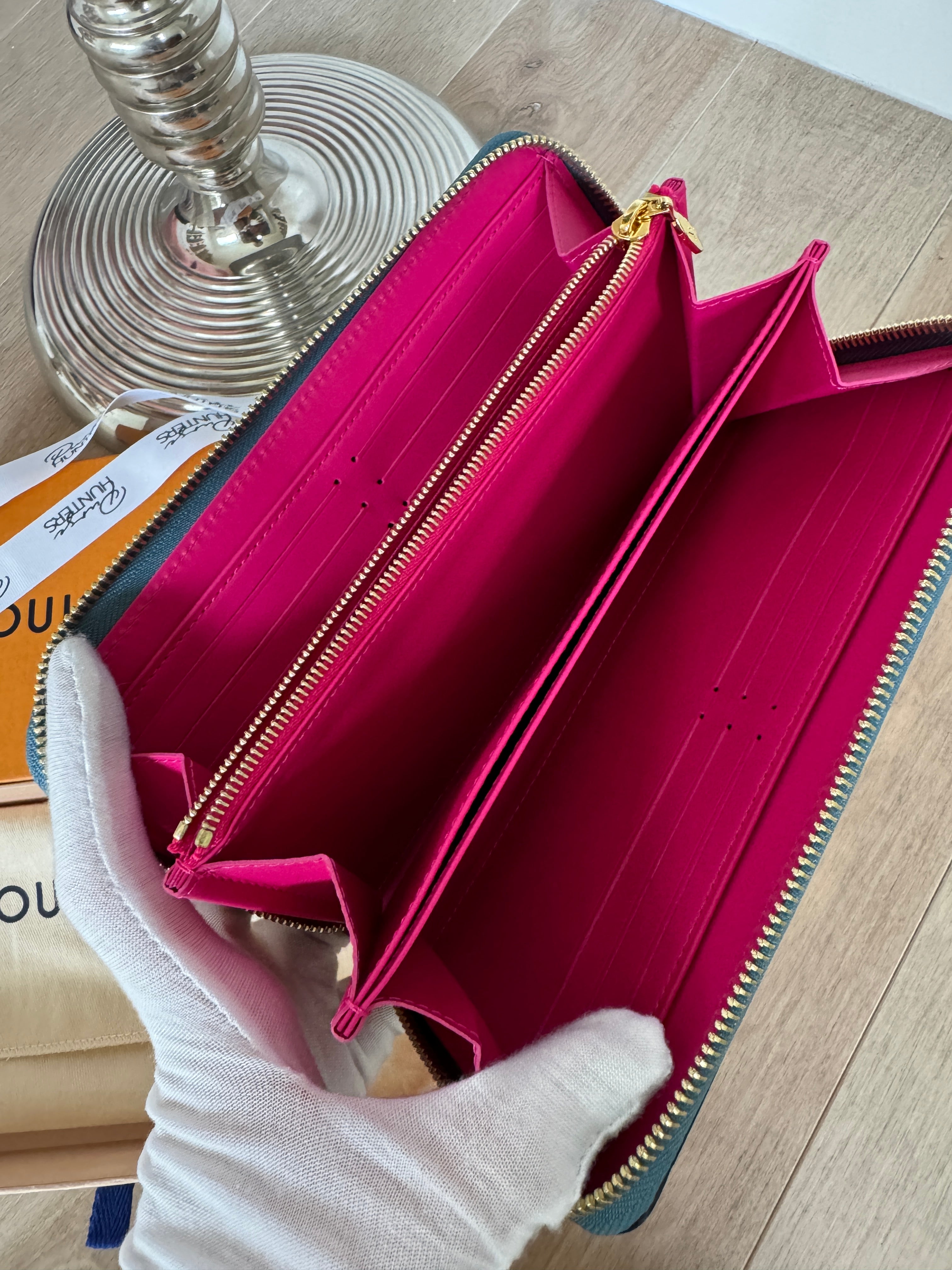 Designed for both fashion and practicality, the wallet features a well-organized interior with card slots, bill compartments, and a secure zippered pocket for coins. Louis Vuitton's attention to detail shines through, making this wallet a perfect blend of style and functionality. In excellent condition. Comes with box, dust bag, ribbon, cards