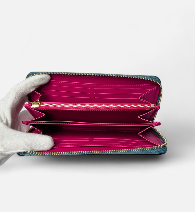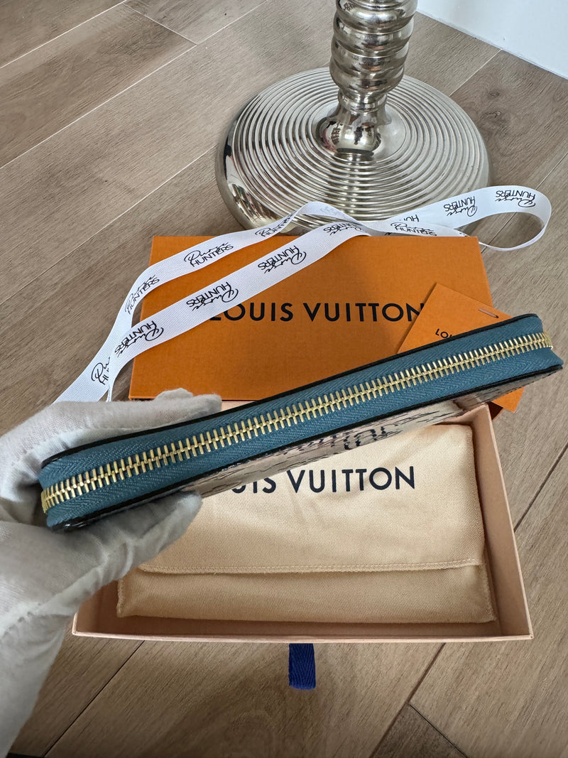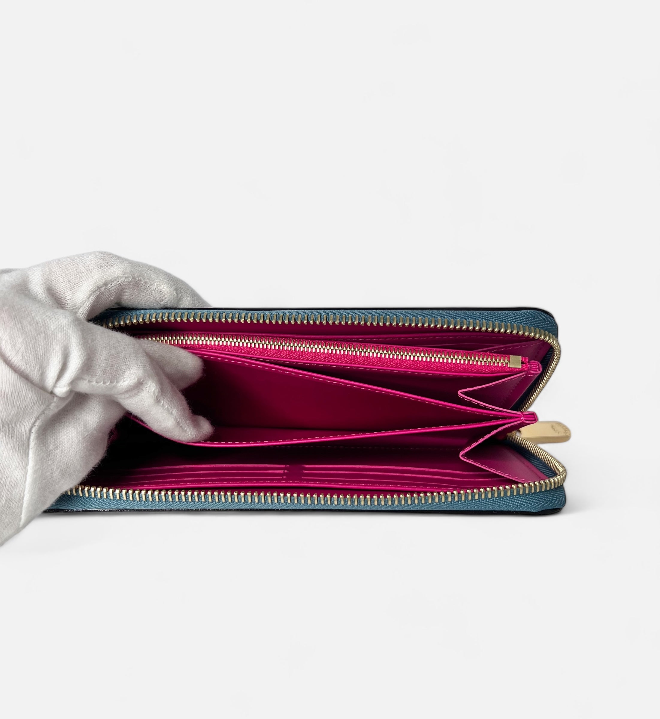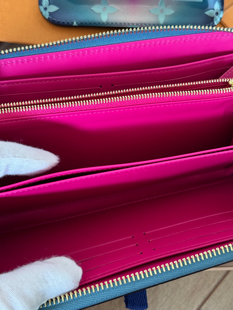Designed for both fashion and practicality, the wallet features a well-organized interior with card slots, bill compartments, and a secure zippered pocket for coins. Louis Vuitton's attention to detail shines through, making this wallet a perfect blend of style and functionality. In excellent condition. Comes with box, dust bag, ribbon, cards