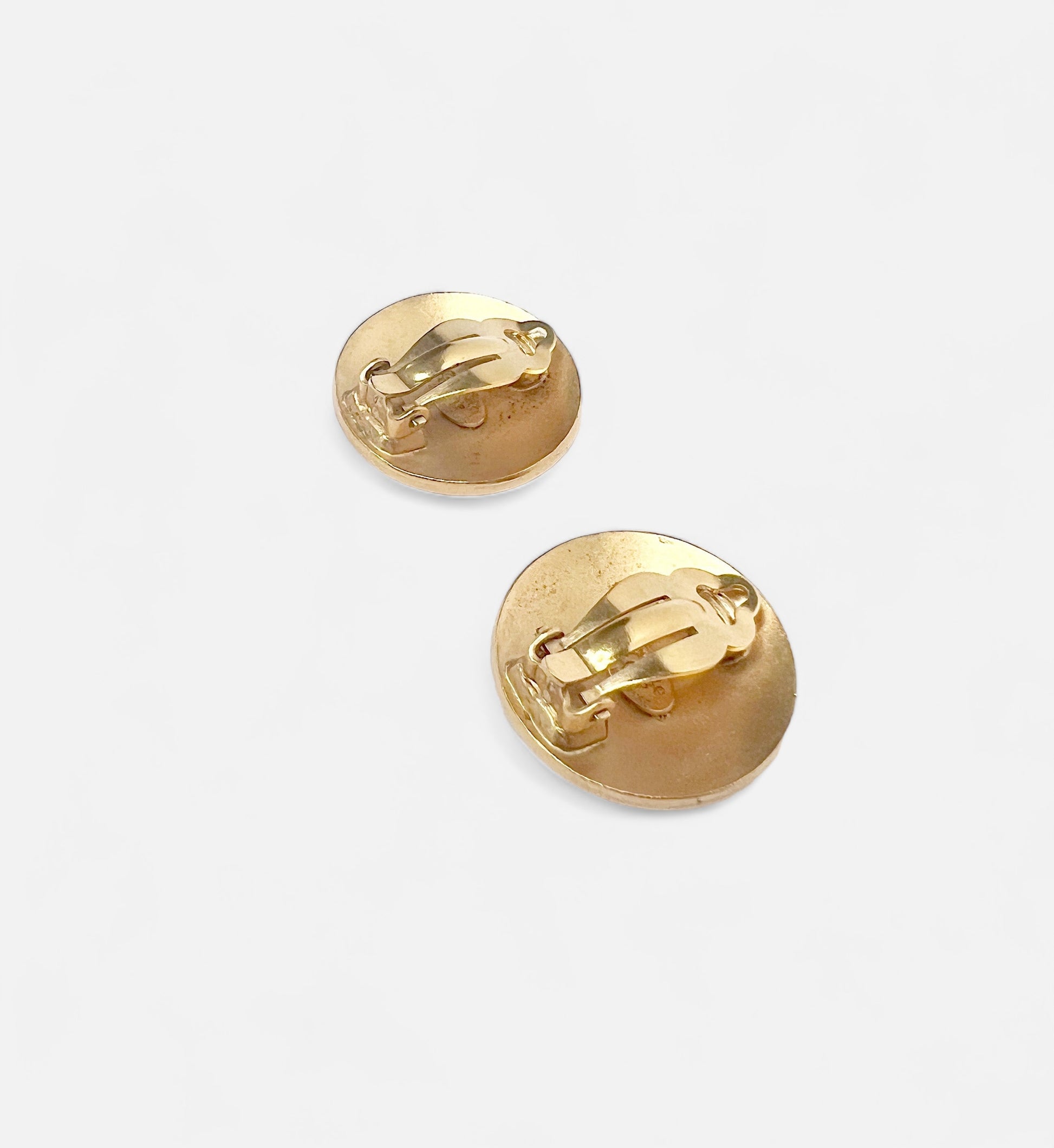 Vintage 94P Enamel Clip on Earrings 24K Gold Plated