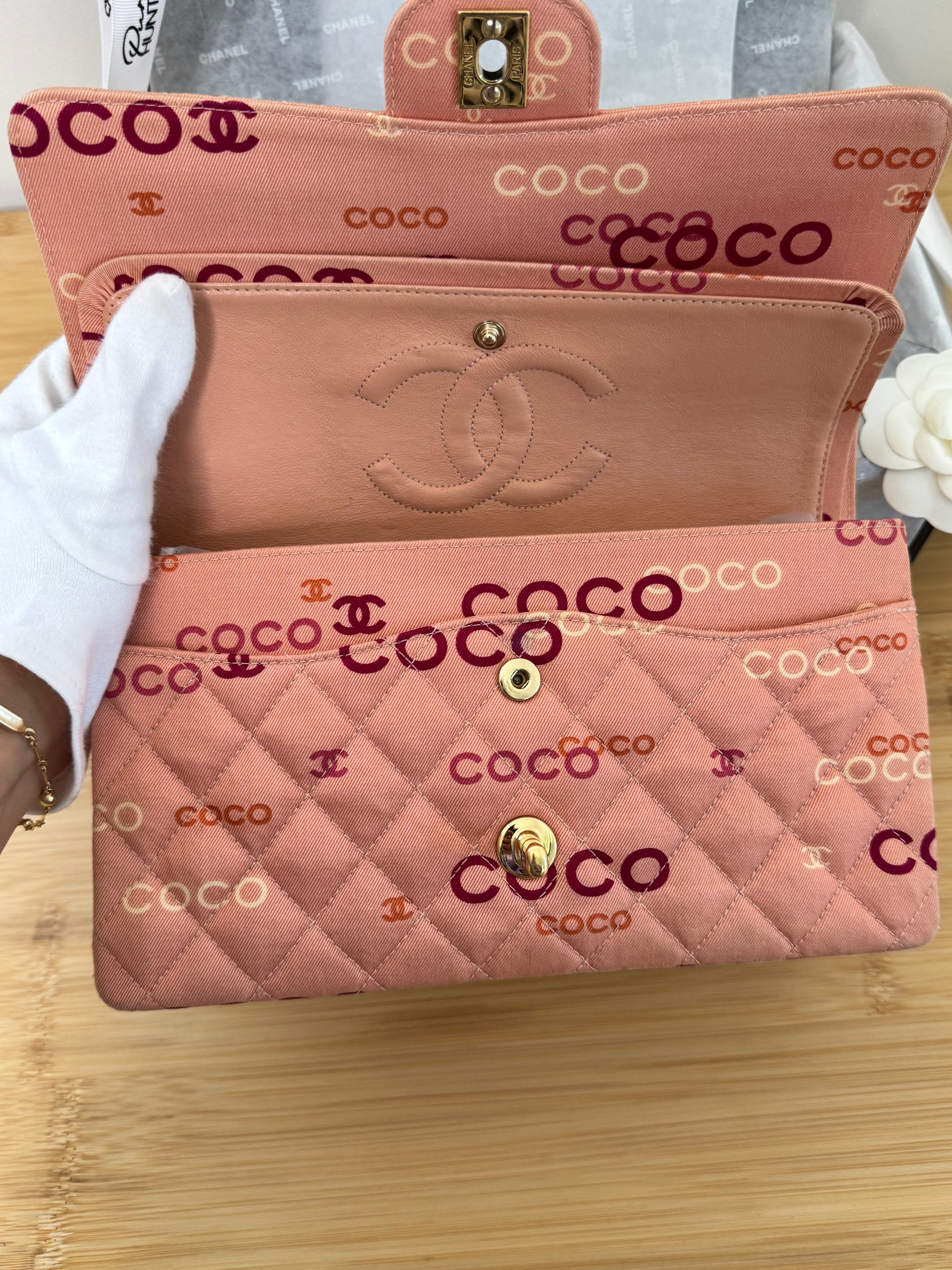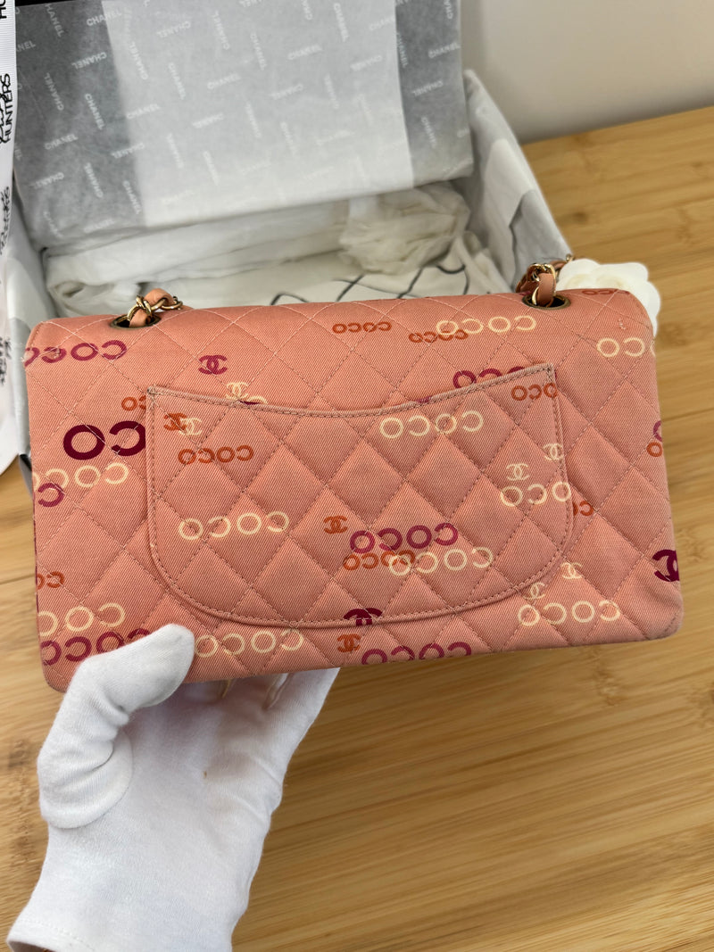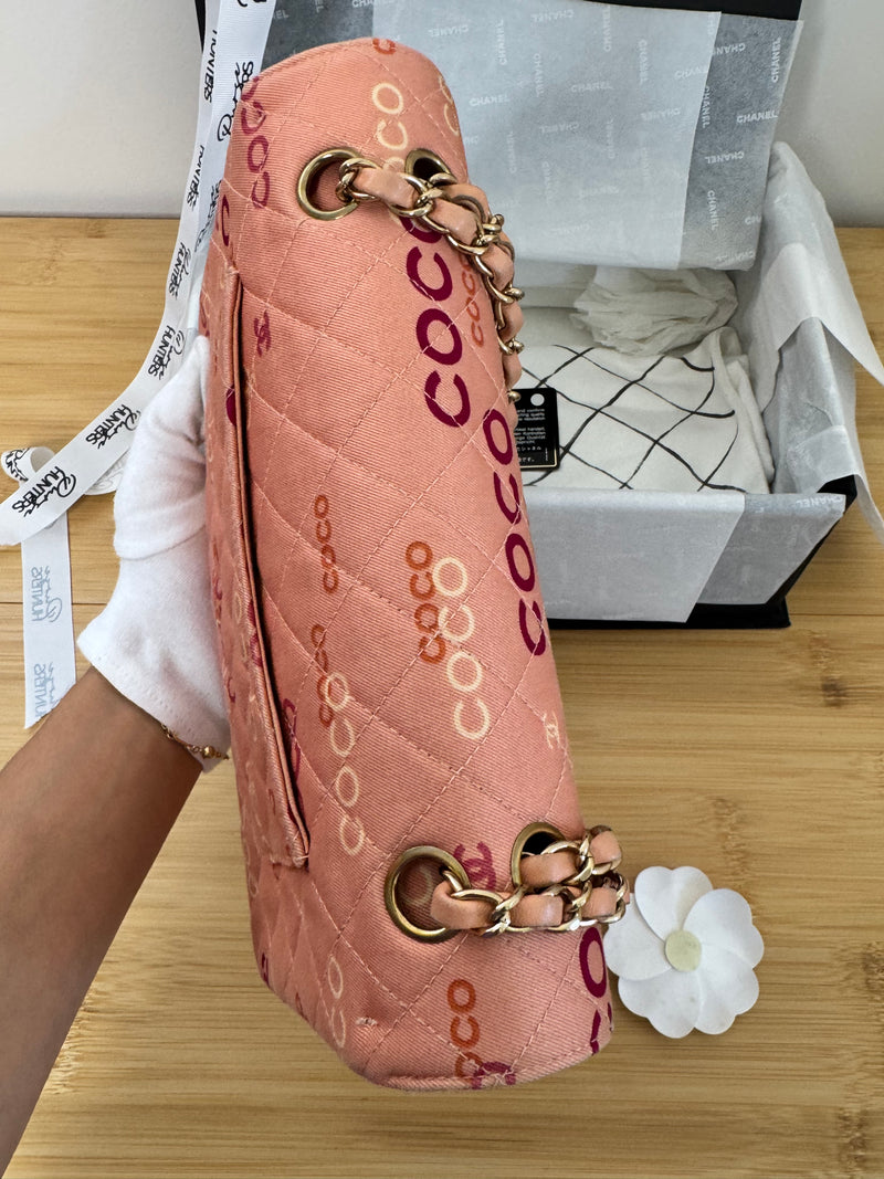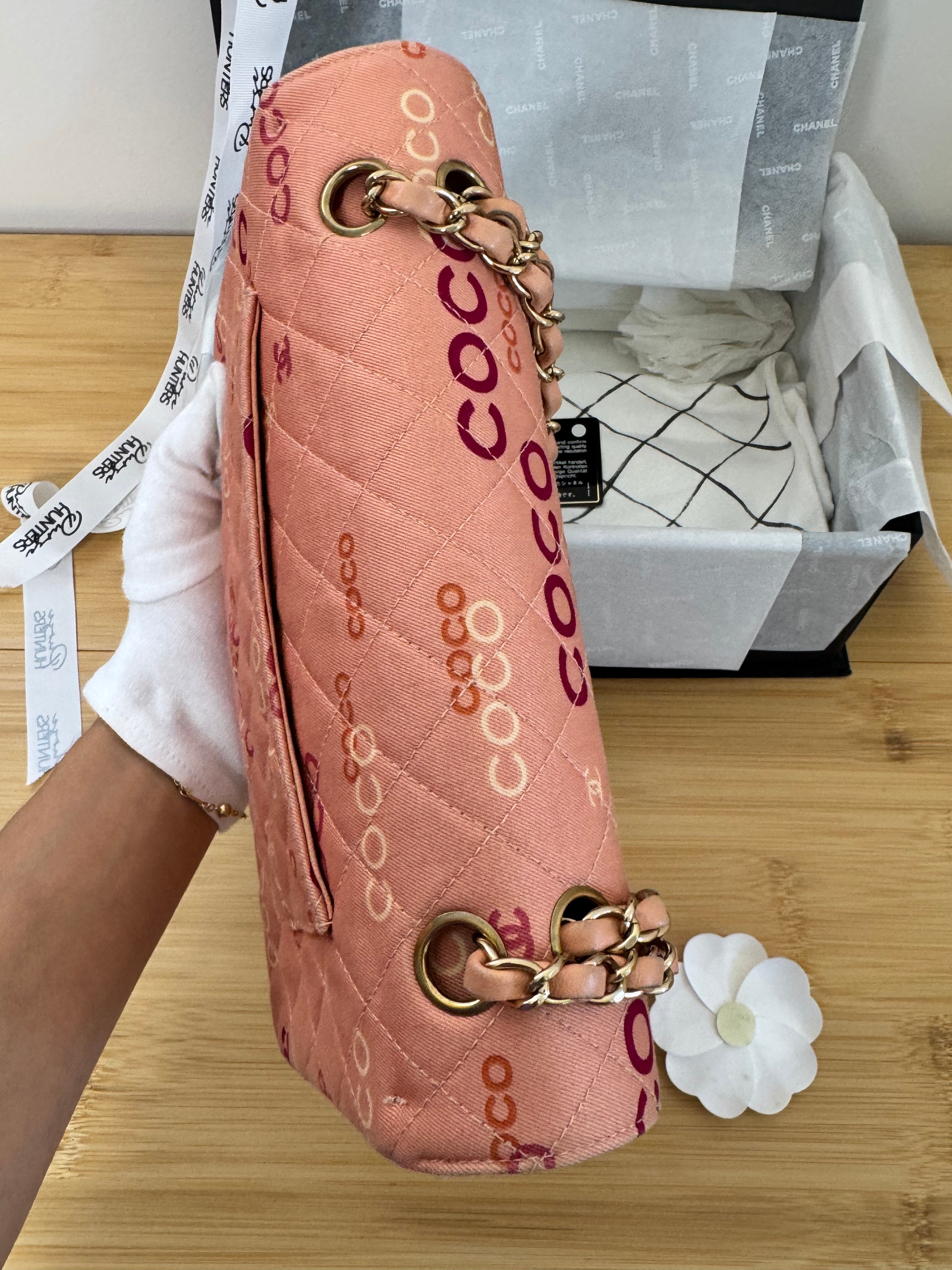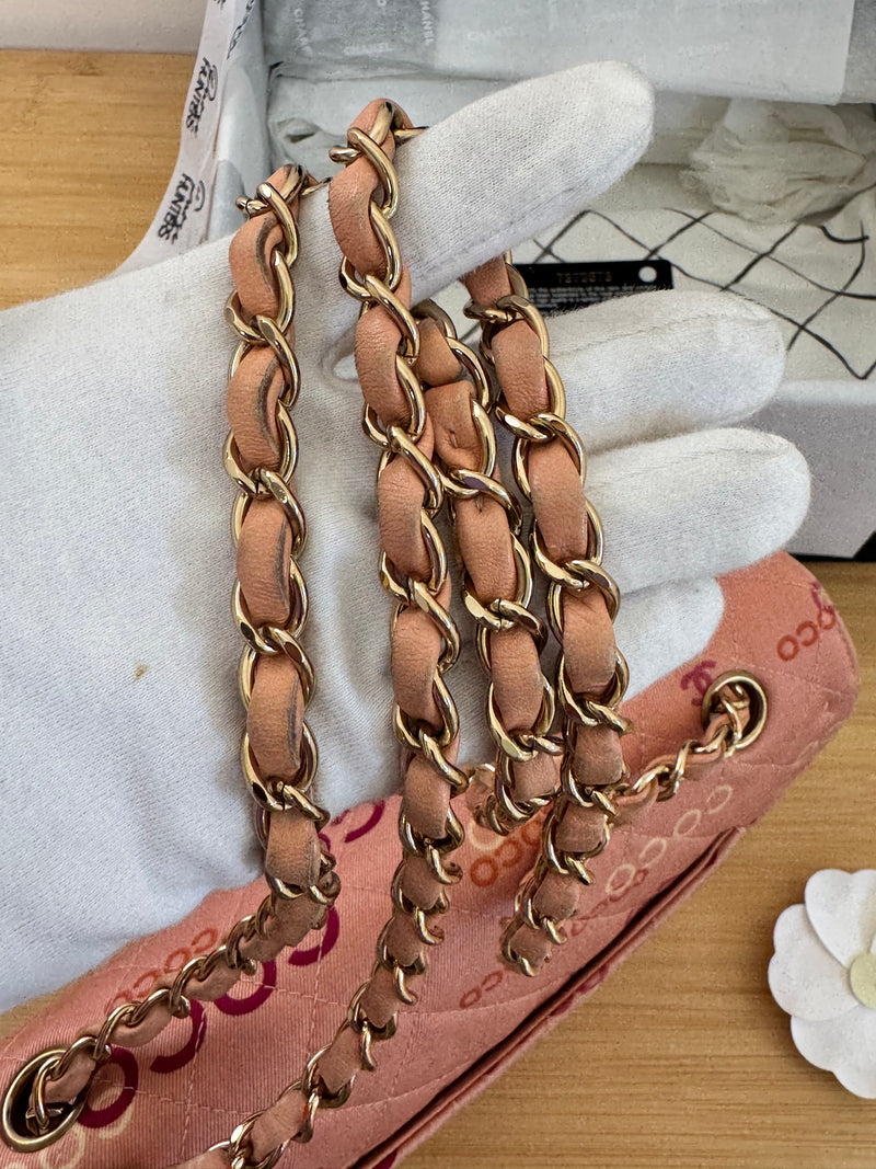 Chanel Coco Printed Classic Flap Bag – Pink Quilted Canvas with Gold Hardware