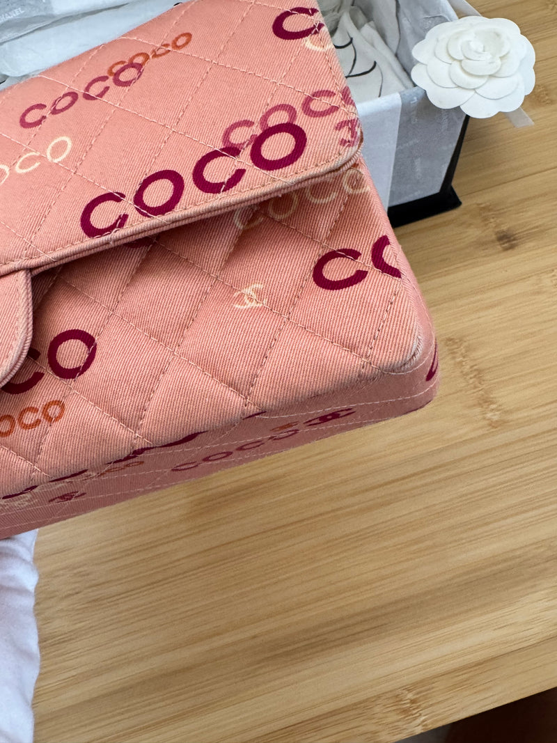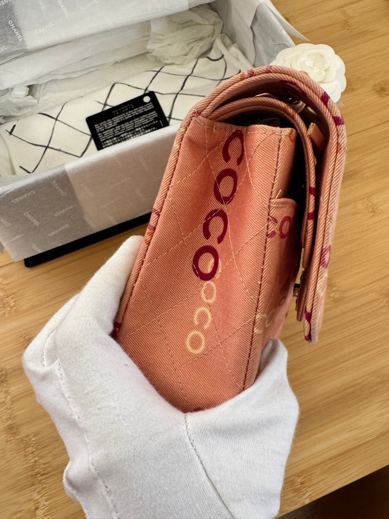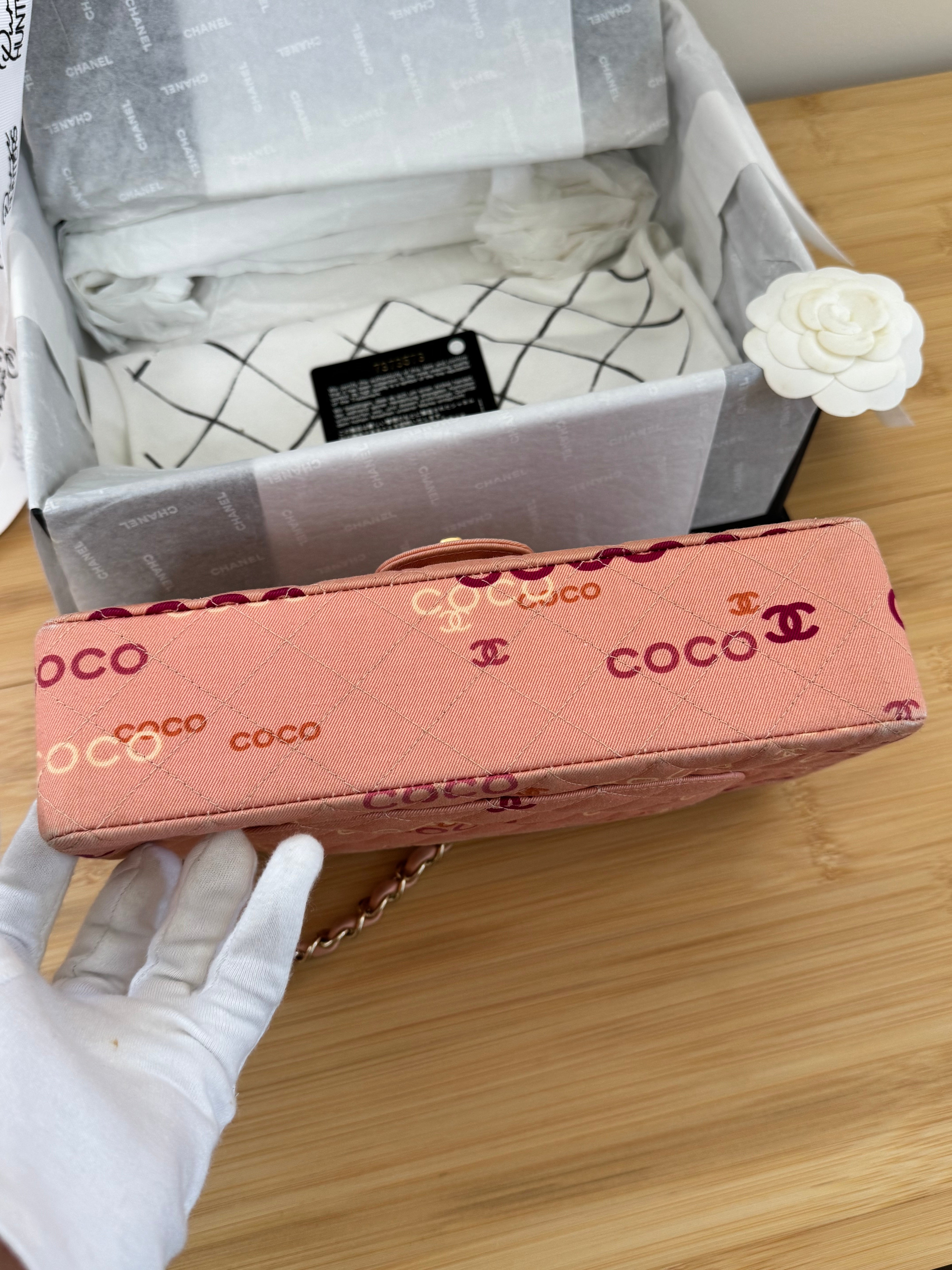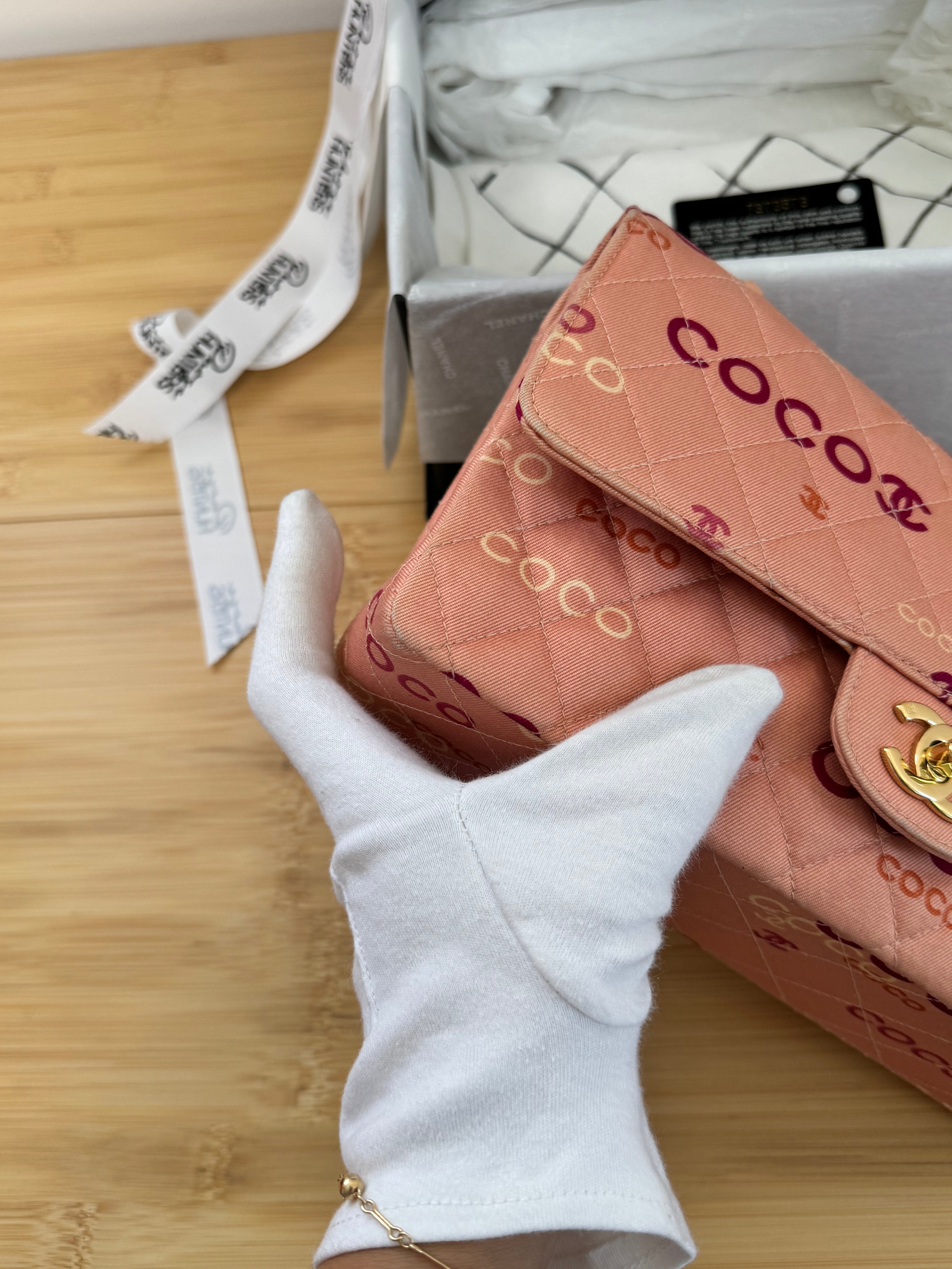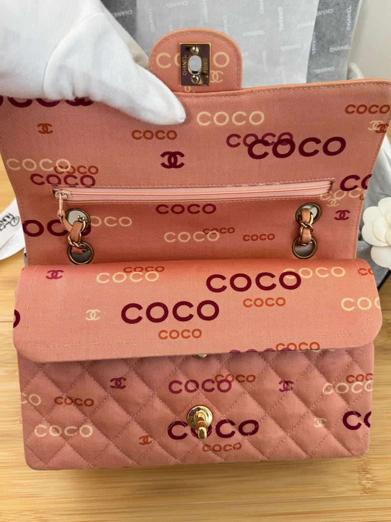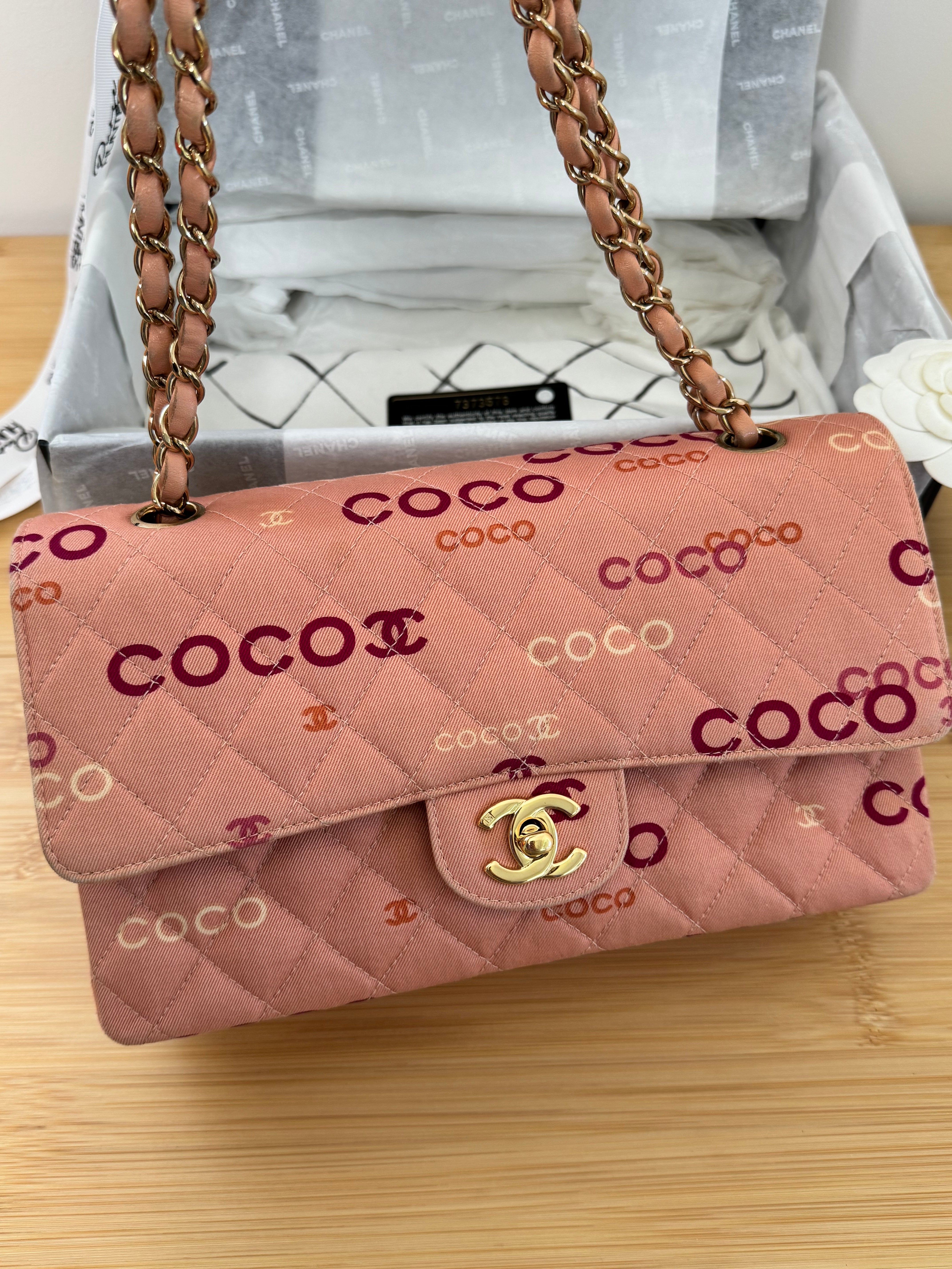 Chanel Coco Printed Classic Flap Bag – Pink Quilted Canvas with Gold Hardware